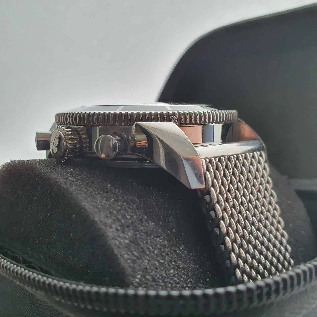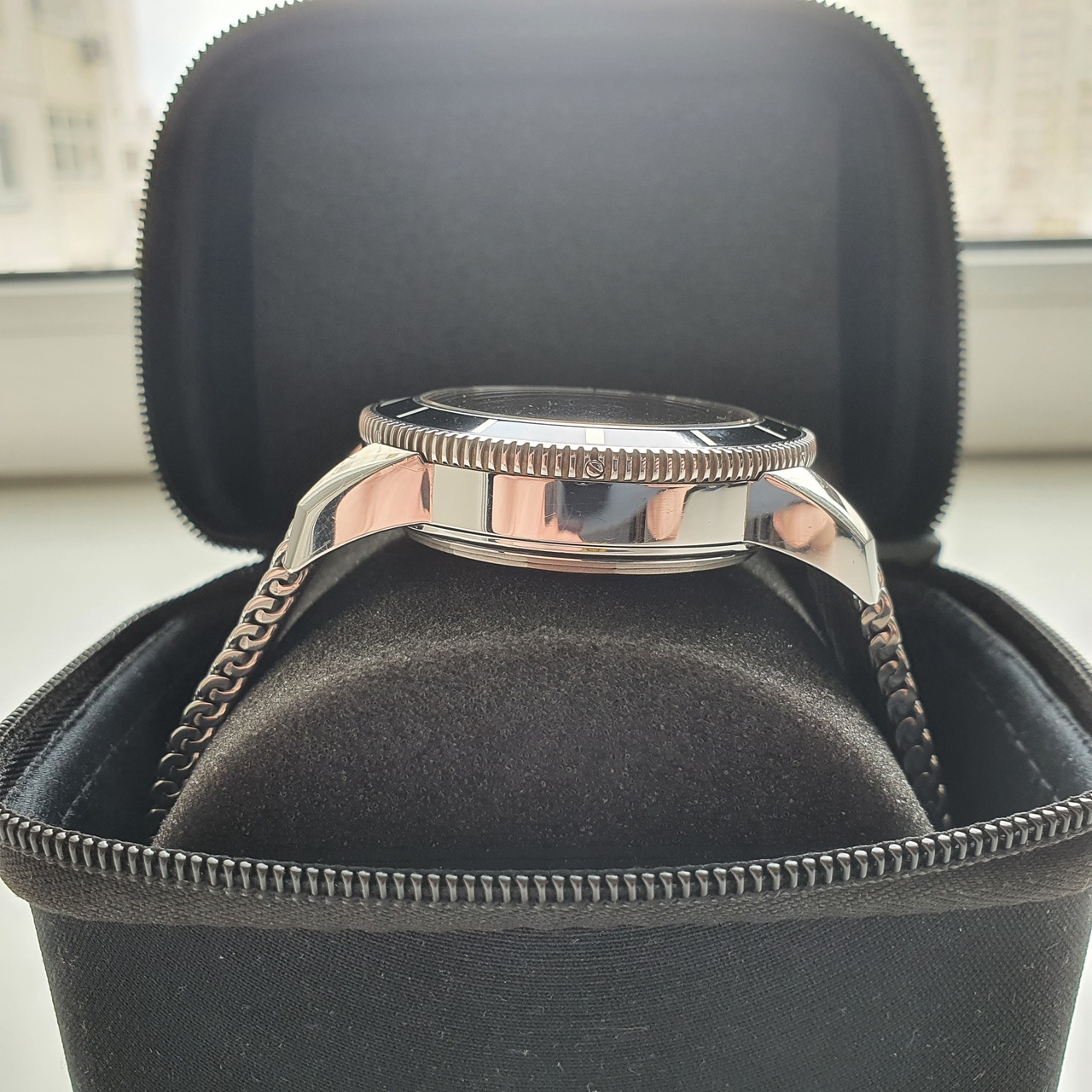 Корпус: Нержавеющая сталь, диаметр 46мм, толщина 16.4мм, сапфировое стекло, безель из нержавеющей стали с черным PVD-покрытием.