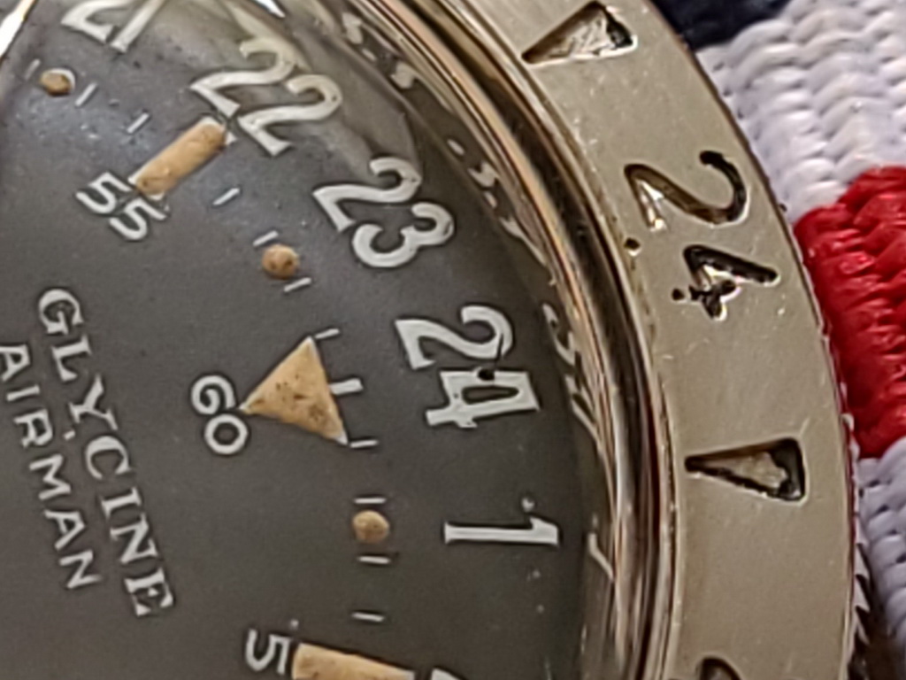 Вот фото часов Glycine Airman из моей коллекции. 1955 год, ранняя модель с «хвостатой» минутной стрелкой. В более поздних вариантах хвост переместился на часовую стрелку