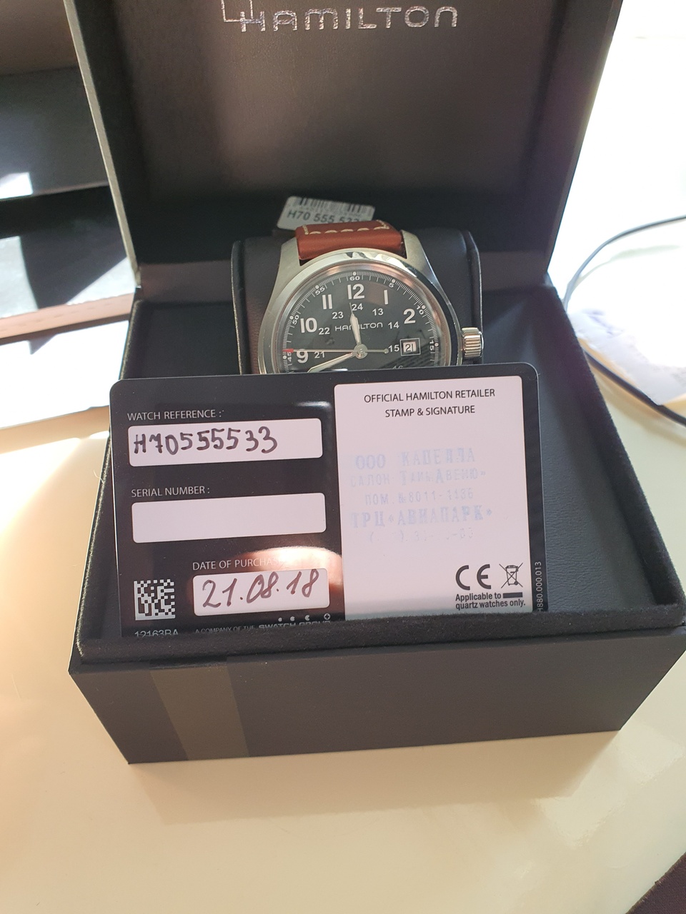 Комплект: полный, коробка, документы, часы, оригинальный ремешок, карточка гарантии