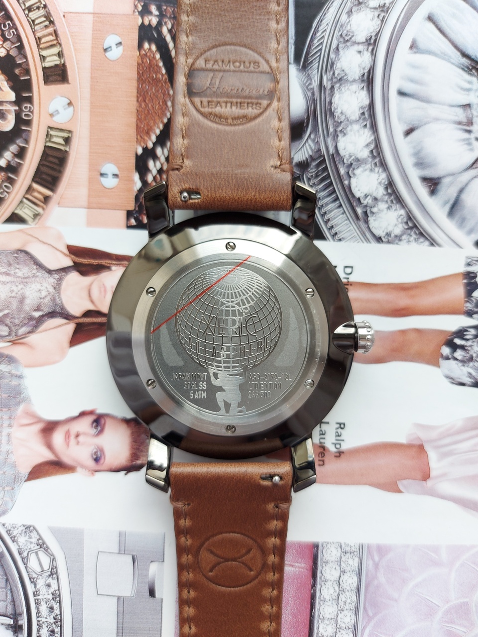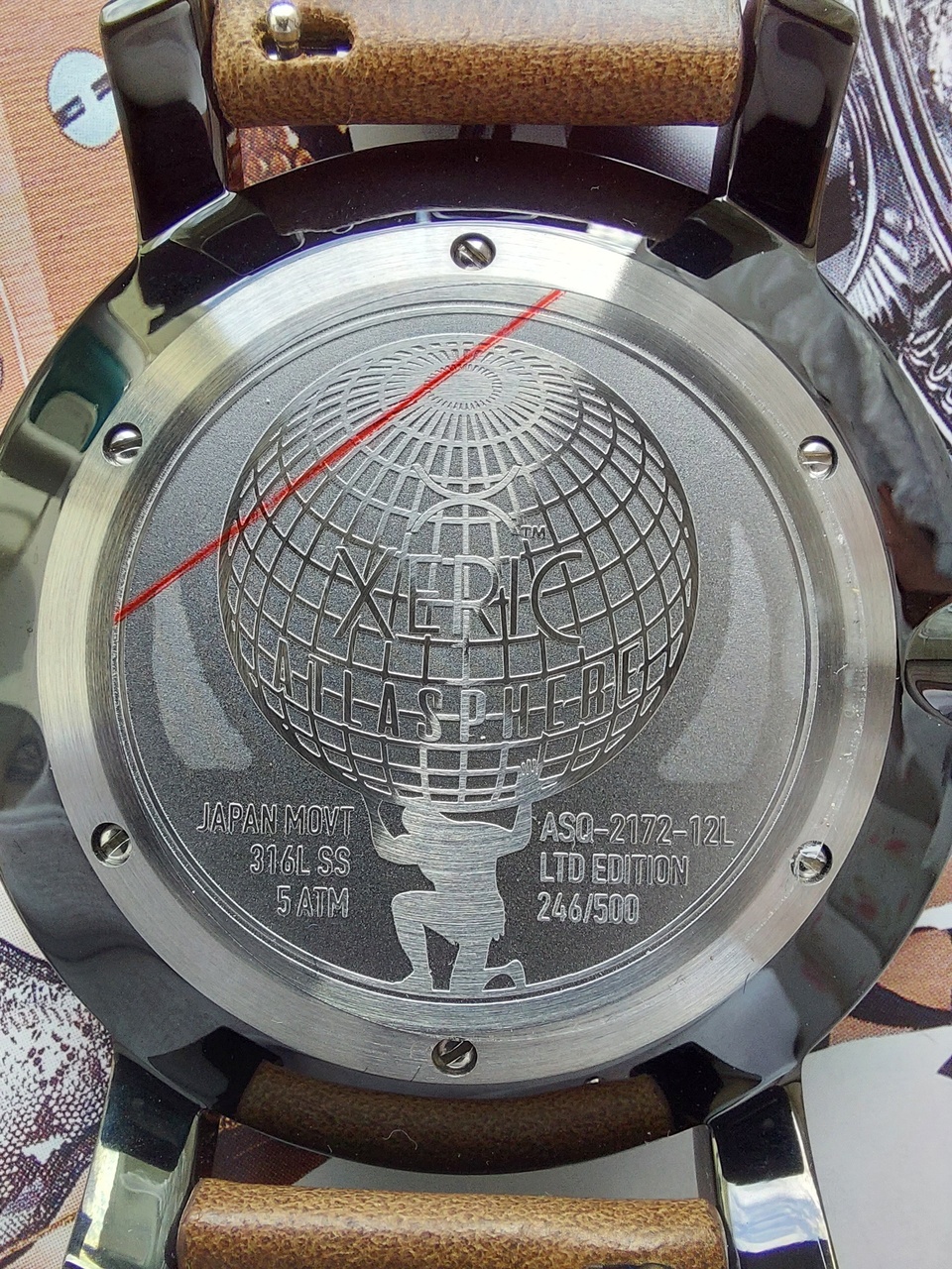 Кварцевый вариант Атласферы по Гринвичу отображает полярные ретроградные индикаторы над и под земным шаром. Северный полюс отслеживает второй часовой пояс, а южный полюс отображает дату. На задней крышке корпуса также есть гравировка с индивидуальным номером 246/500.