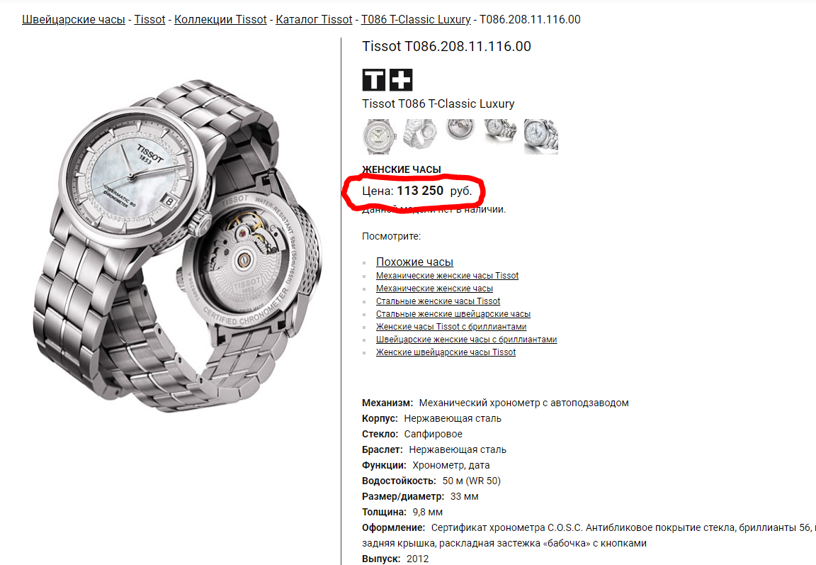 TISSOT Luxury Ladies Auto COSC T086208111160