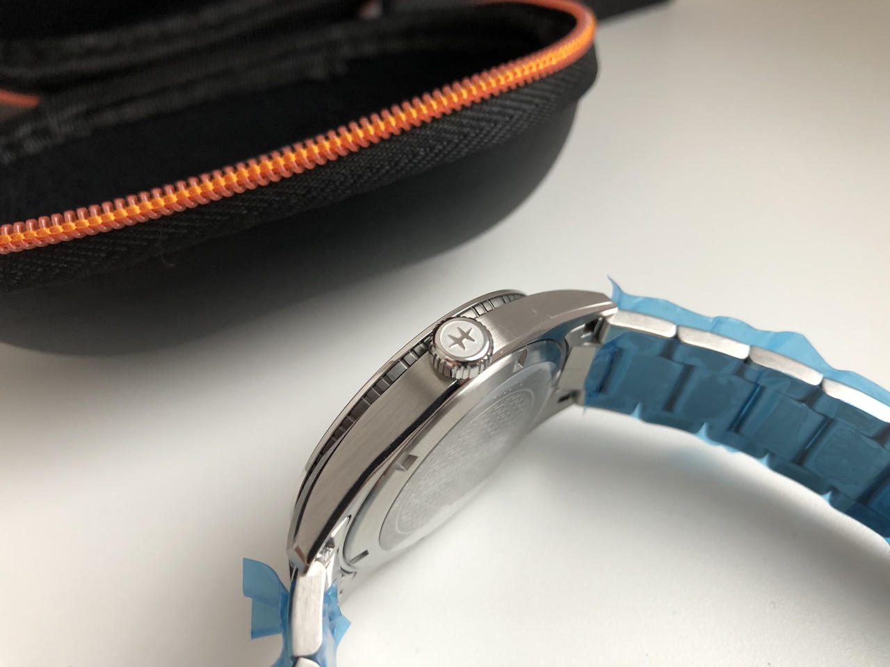 Из особенностей стоит отметить очень хороший браслет, сапфировое стекло с отличной прозрачностью и эффектом отсутствия стекла через которое отлично видно интересно отделанный цифер с вертикальным сайдингом ну и функцию день/дата.