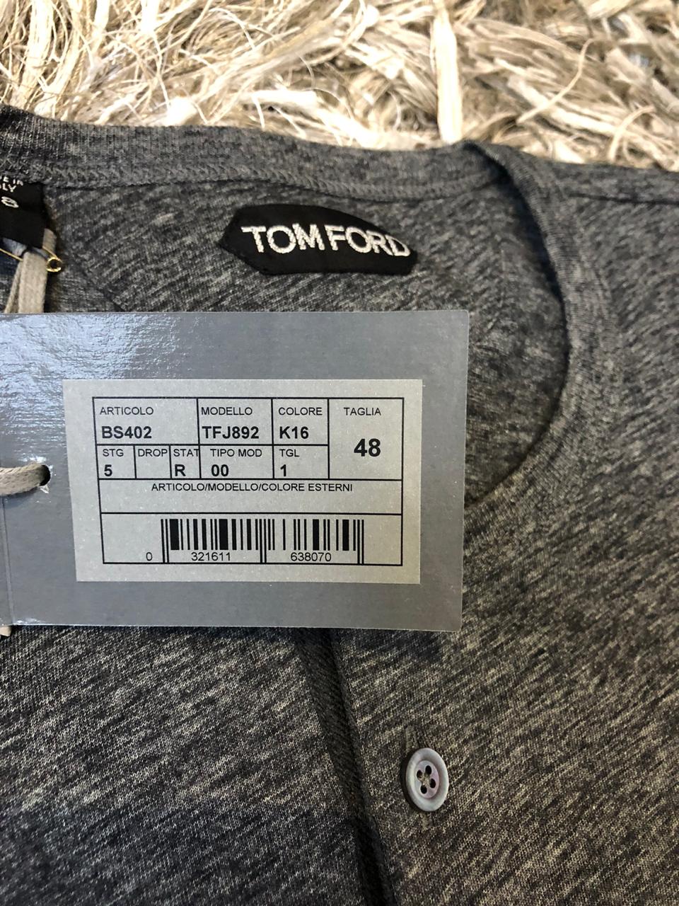 TOM FORD новая мужская футболка Henley серого цвета из хлопка (48 size)