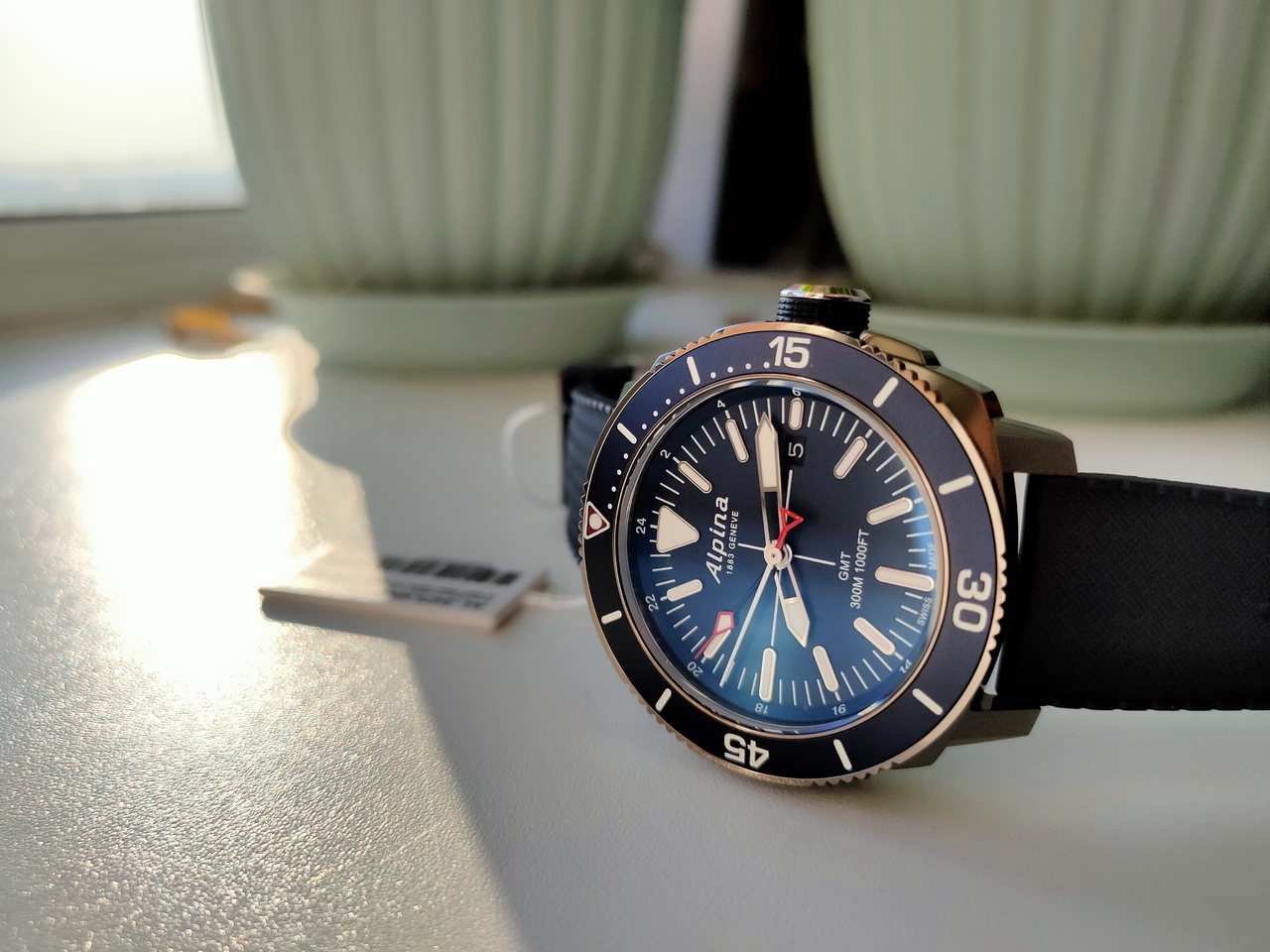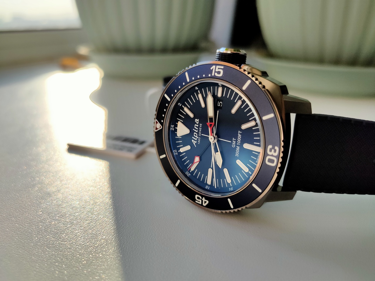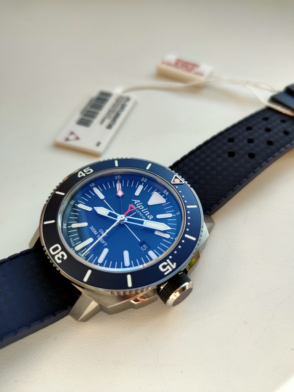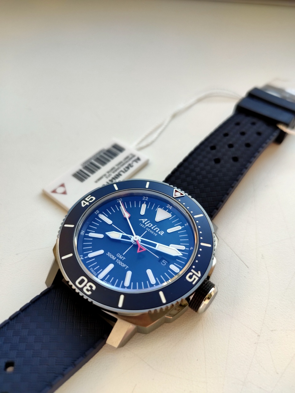 В продаже отличные дайверы с функцией GMT от уважаемого производителя в самой красивой, на мой скромный взгляд, синей расцветке. Шикарный цифер тёмно-синего цвета с накладными элементами, отличная читаемость под любым углом, классный люм, качественный каучуковый ремешок в цвет цифера. Очень сбалансированная и качественно исполненная модель