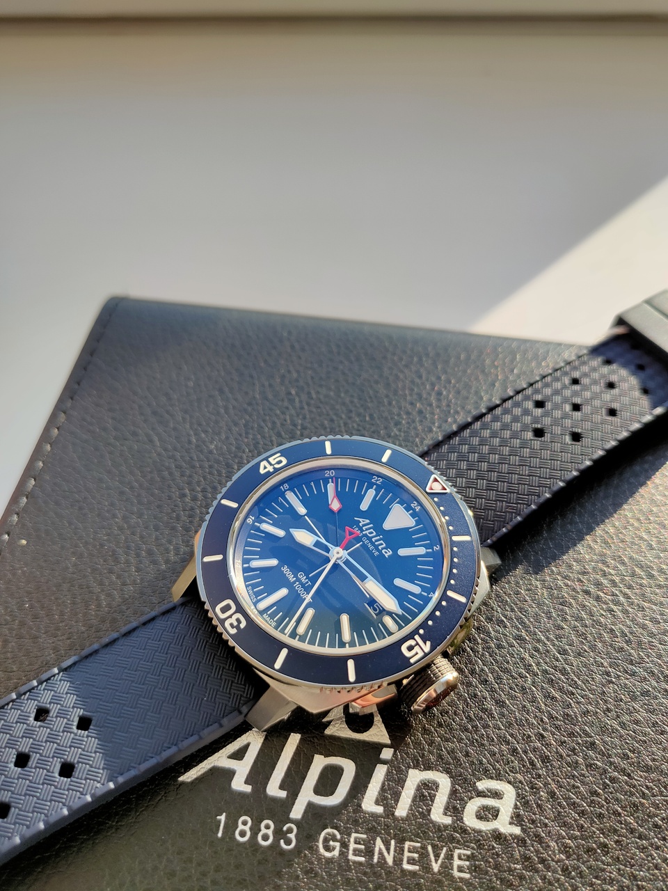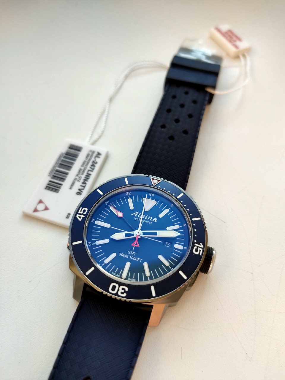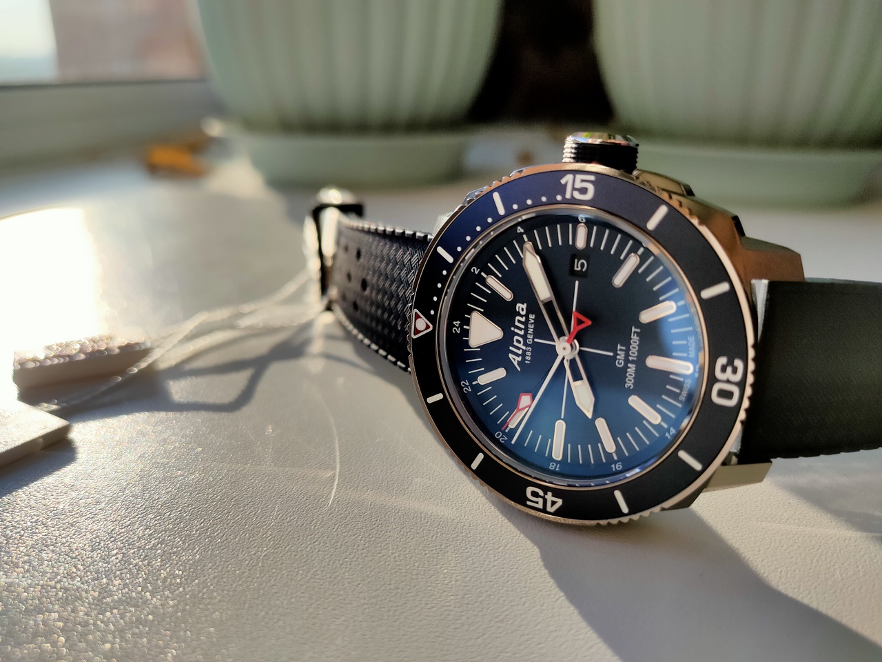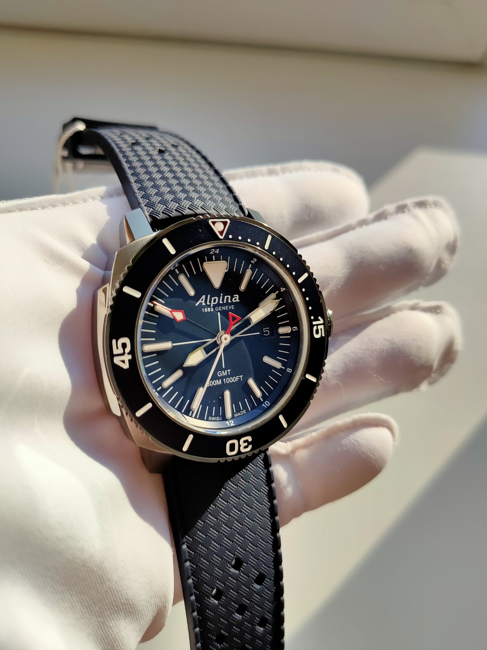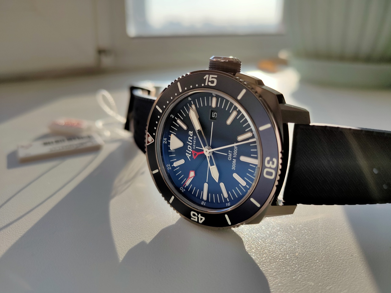 В продаже отличные дайверы с функцией GMT от уважаемого производителя в самой красивой, на мой скромный взгляд, синей расцветке. Шикарный цифер тёмно-синего цвета с накладными элементами, отличная читаемость под любым углом, классный люм, качественный каучуковый ремешок в цвет цифера. Очень сбалансированная и качественно исполненная модель