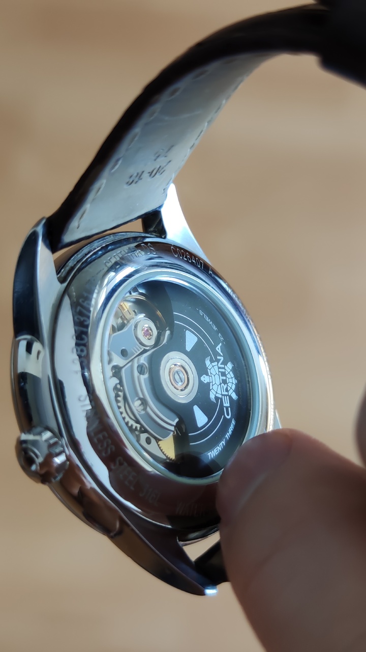 В целом: замечательные часы на автомате с красивым цифером, за исключением пары некритичных царапок на нижней правой дужке в очень хорошем состоянии. По большому счету все что нужно, это купить для них на новый ремень. Ритейл у них примерно 67 тысяч.