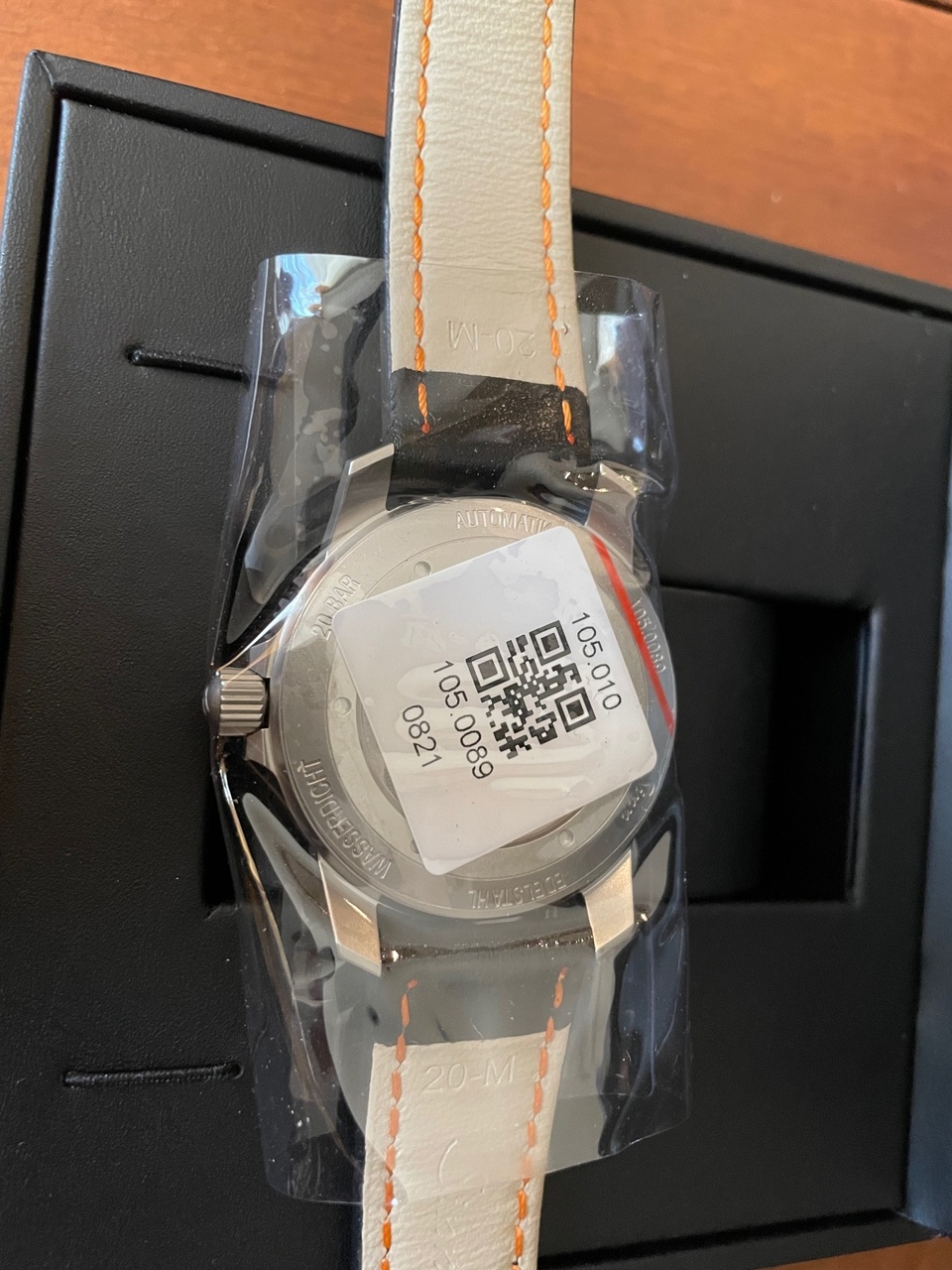 -Материал браслета: Кожа с контрастной оранжевой прострочкой