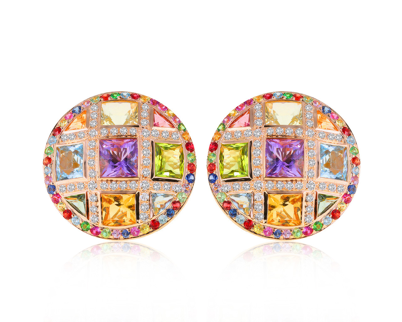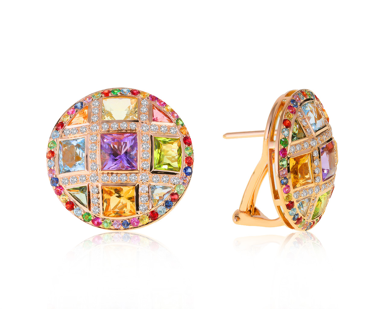 Представляем вашему вниманию оригинальные золотые серьги с цветными камнями 8.14ct и бриллиантами 0.55ct от всемирно известного бренда Zorab.