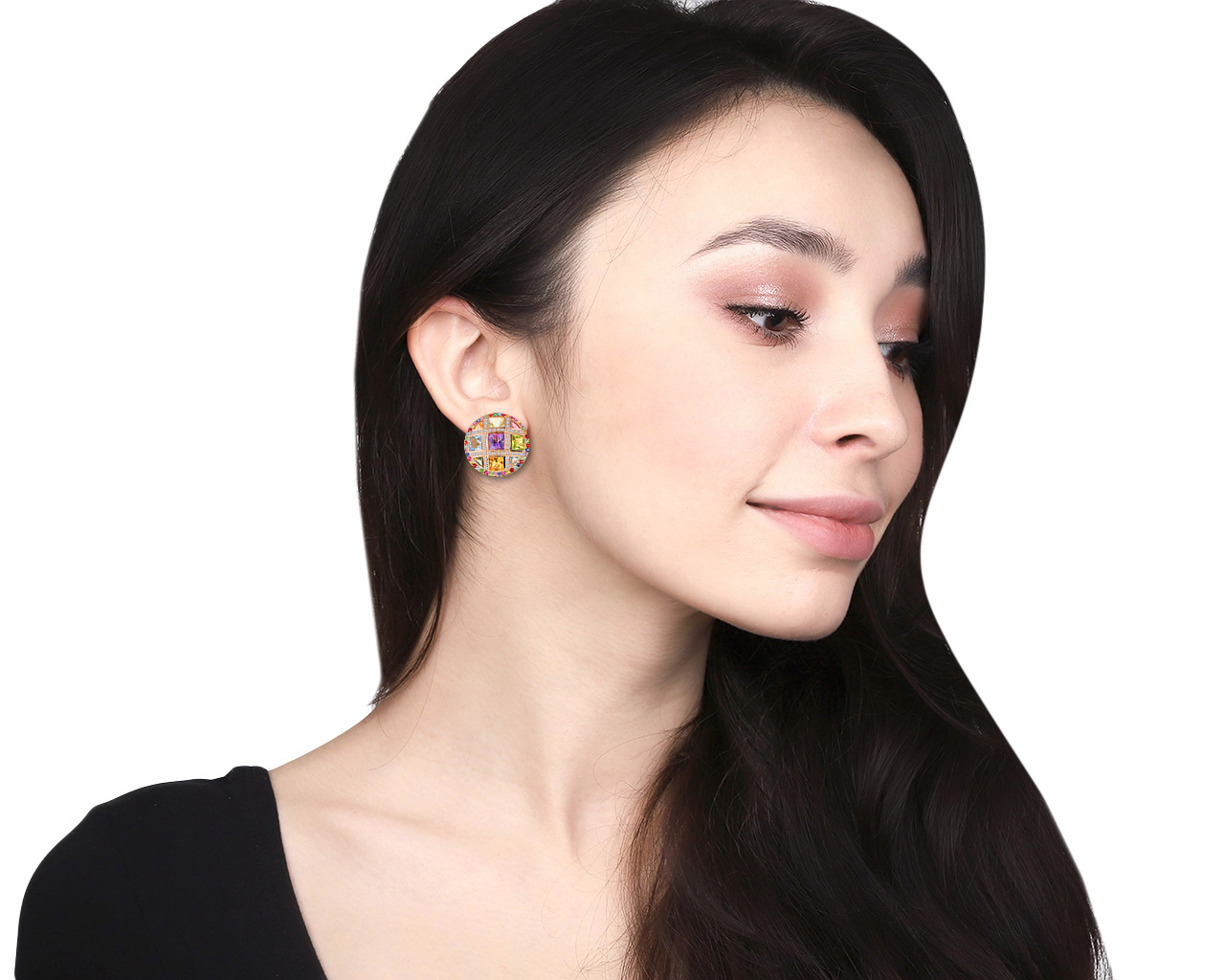 Оригинальные золотые серьги с цветными камнями 8.14ct