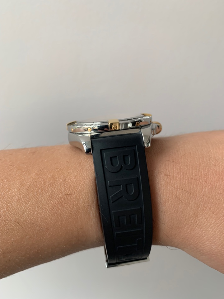 На мой взгляд самый красивый Breitling в серии Galactic с золотыми райдерами на безеле, головкой, стрелками, метками и логотипом бренда. Золото добавляет акцента этим и без того красивым часам, но при этом они не смотрятся вычурно. Очень красивые, стильные и универсальные часы.