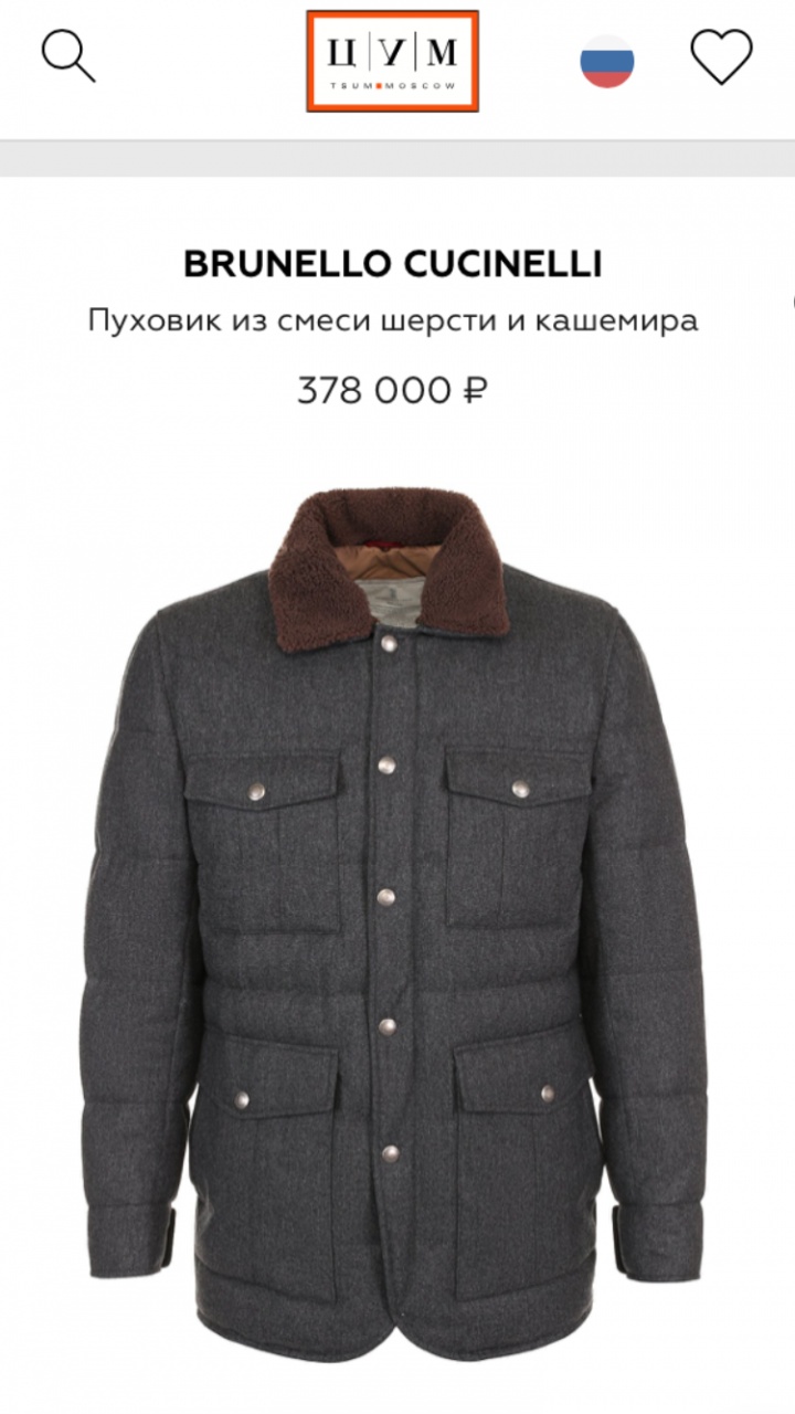 В продаже новый мужской пуховик от люксовой итальянской марки BRUNELLO CUCINELLI.