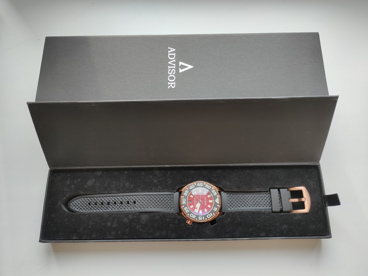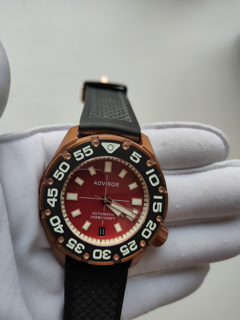 В продаже шикарная бронза из личной коллекции. Продажа в связи с оптимизацией сета. Лимитка из 100 штук под номером 24. Стоимость на официальном сайте $800. Часы в отличном состоянии близком в новому. Состояние "АА" поставил с запасом. Бронзовый безель с керамической вставкой, накладные метки, многоярусный объемный цифер классного красного цвета, красиво играющий на солнце и меняющий цвет, слегка купольный сапфир, надежный и проверенный швейцарский механизм. Люм просто БОМБА! В моих руках побывало немало бронзовых часов, но эти, действительно, хороши. В общем, данный экземпляр -отличный вариант как для знакомства с миром бронзовых часов, так и в качестве пополнения имеющейся коллекции.