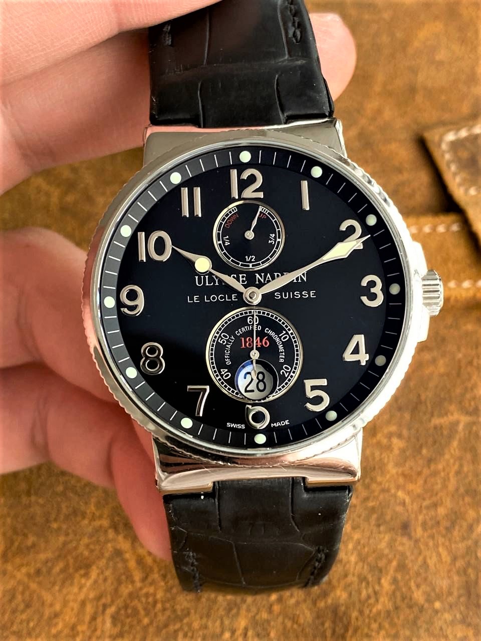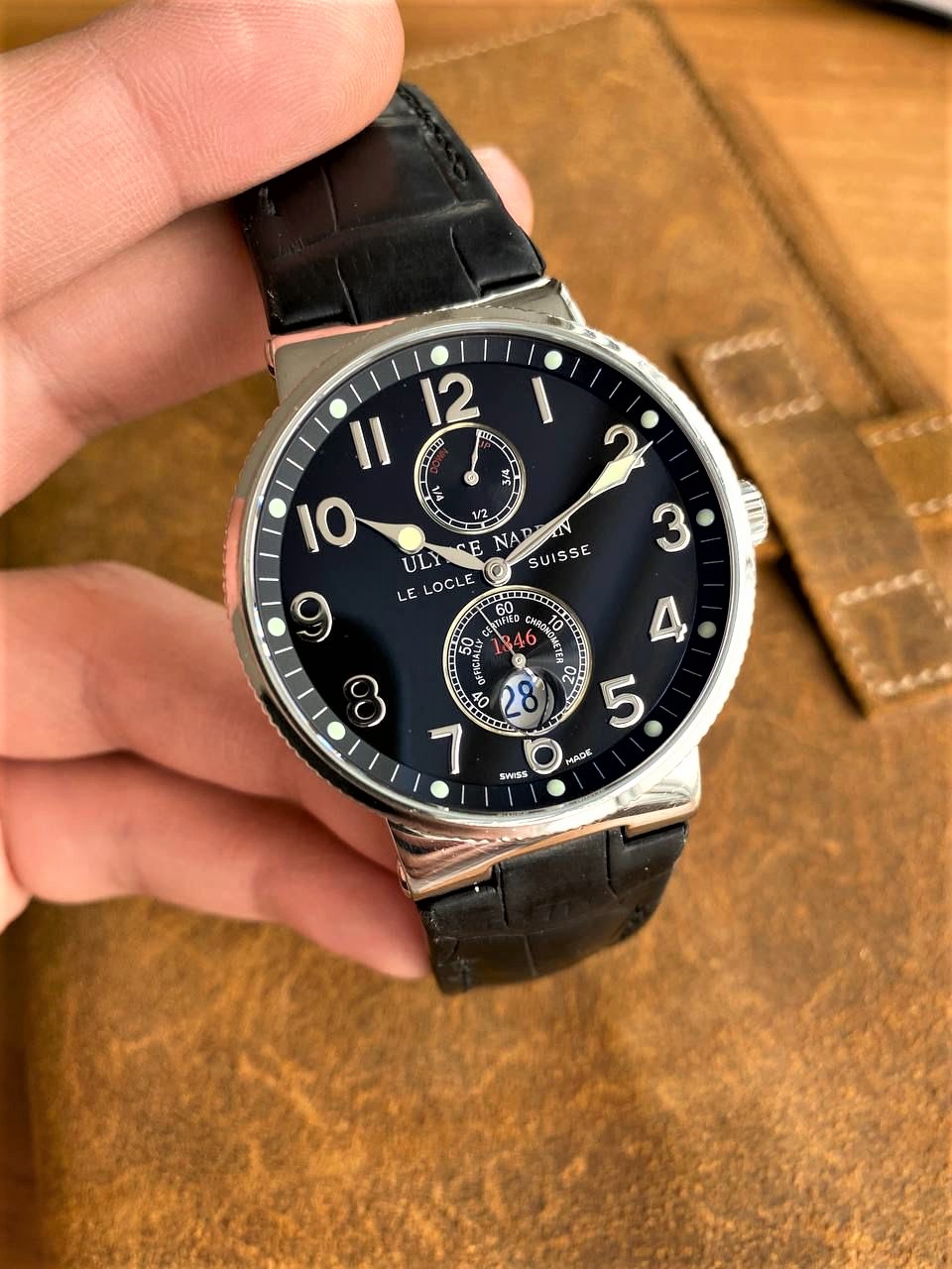 Отличный Улис для любителей красивых и узнаваемых часов. Комфортный 41 размер, застежка бабочка, мануфактурный калибр UN-24, красивый люм, индикатор запаса хода. Часы подходят под абсолютно любой стиль одежды. В комплекте только часы. Ремешок с внутренней стороны чуть уставший но послужит. Естественные следы носки по корпусу, ничего критичного. цену сразу поставил лучшую в мире)