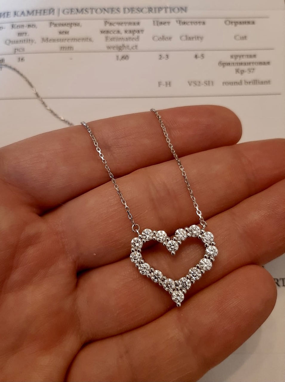 Колье с бриллиантами "Сердце" 1,6 карат (аттестат МГУ)!