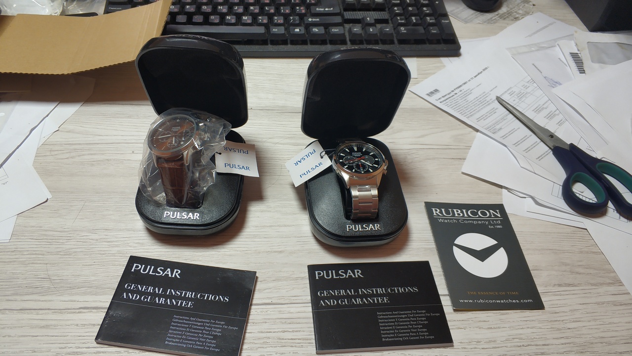 Вышло 2а хронографа, надеюсь рабочих, с японской начинкой и стеклом Hardlex за 7900 рубчиков с доп. скидкой 5% + доставка 800