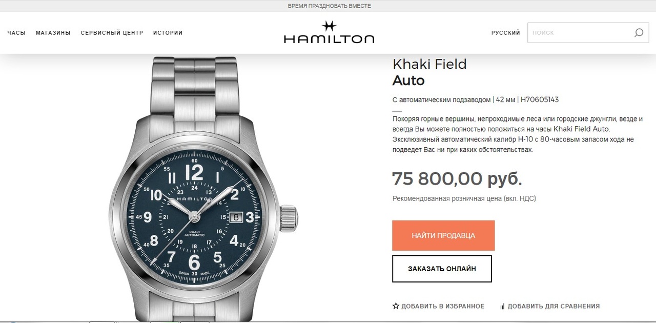 Механизм: швейцарский с автоподзаводом, H-10 с 80-часовым запасом хода