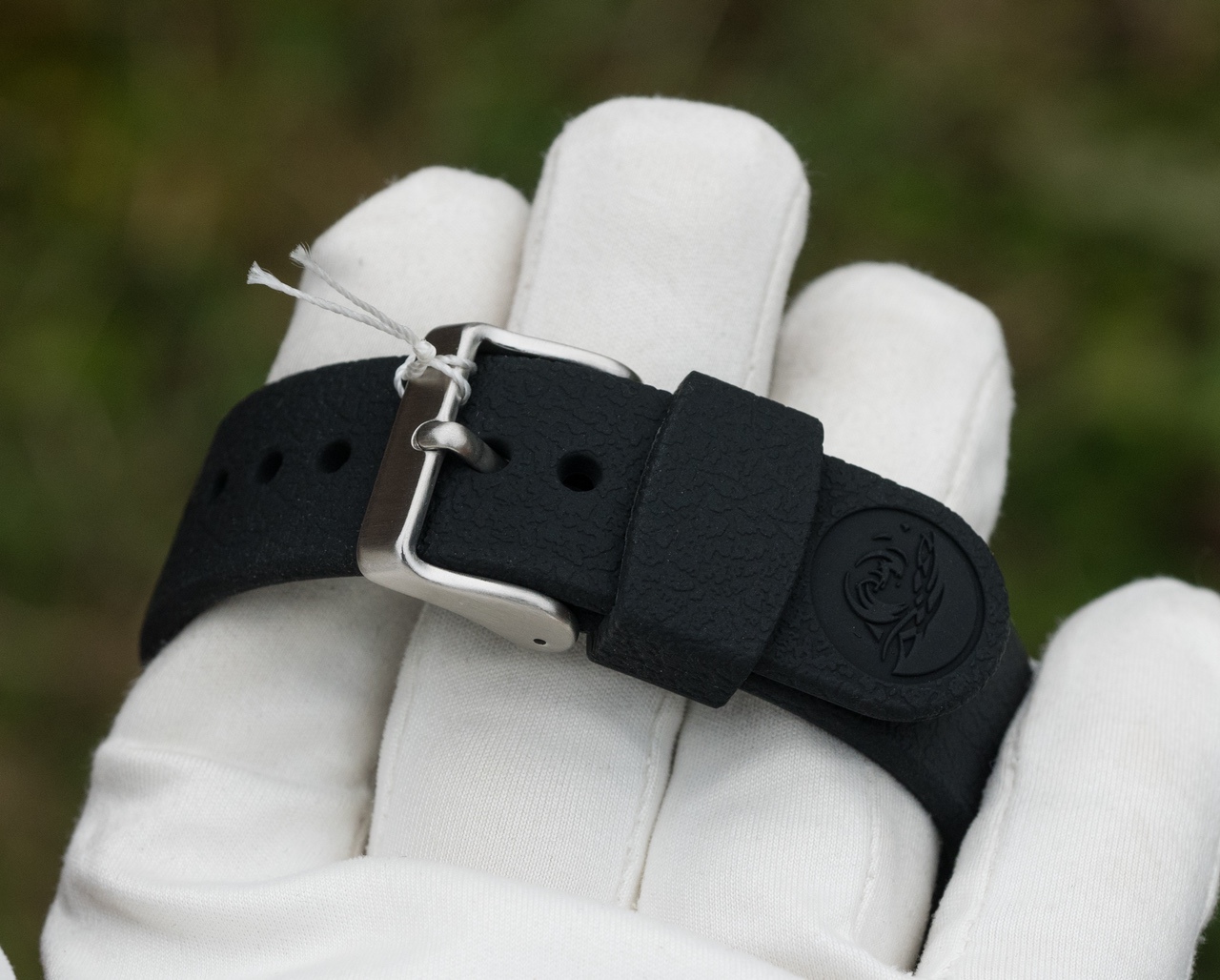Мягкий силиконовый ремень, черный с текстурой, 22мм, стальная бакля, толстые усиленные шпильки