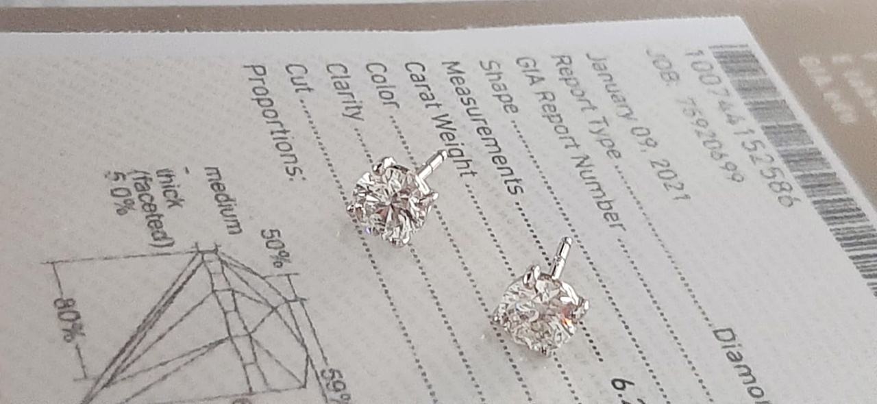 В продаже серьги-пуссеты с бриллиантами по 1 карату каждый (сертификаты GIA)!