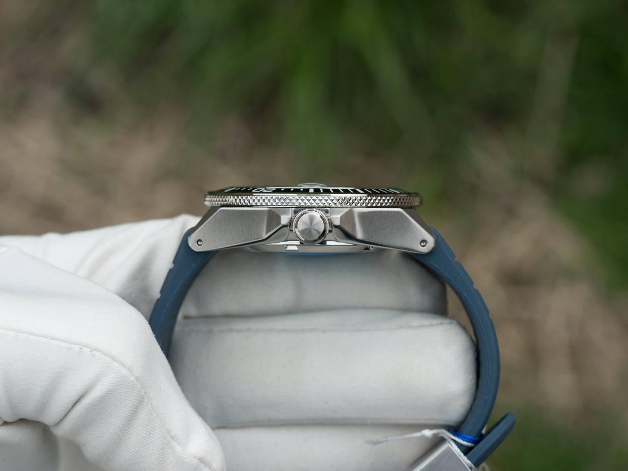 Стекло сапфировое с антибликовым покрытием, утоплено ниже безеля, увеличительная линза на дате