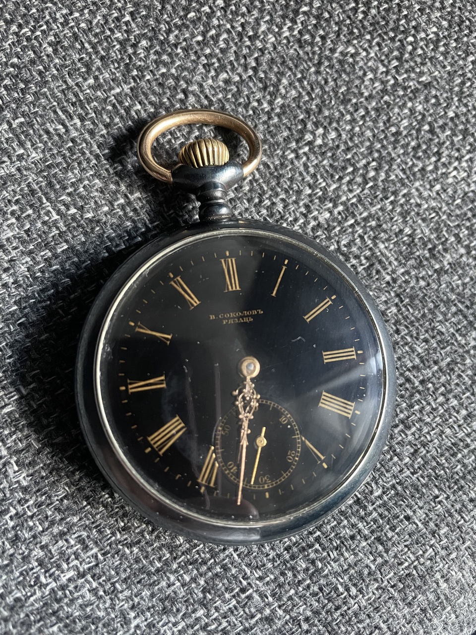 Вчера я немножко приблизился к своей мечте. Стал обладателем рязанских карманных часов Василия Соколова. Да, безусловно, это очень маленький шажок, но я очень рад. Во первых это мои первые старинные часы, во вторых Соколов торговал на одной улице с Топорковым (моим прапрадедом). Дома располагались на ул. Почтовой друг напротив друга (может они даже видели друг друга в окно ). Подозреваю, что они точно друг друга знали.. Есть даже запись в Адрес-календаре за 1912 год, где они на соседних строчках оба записаны.