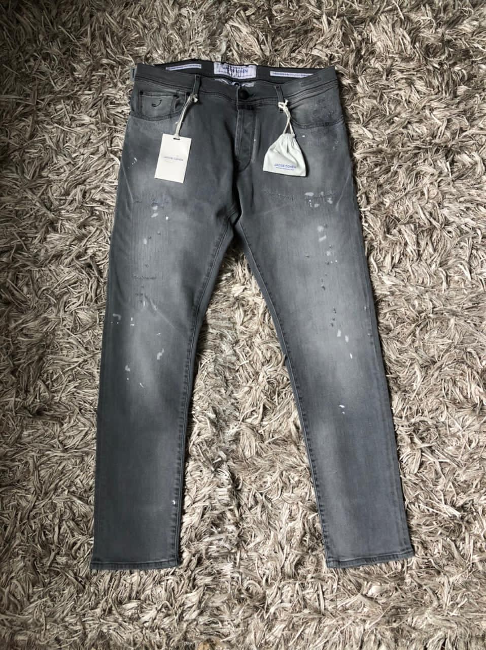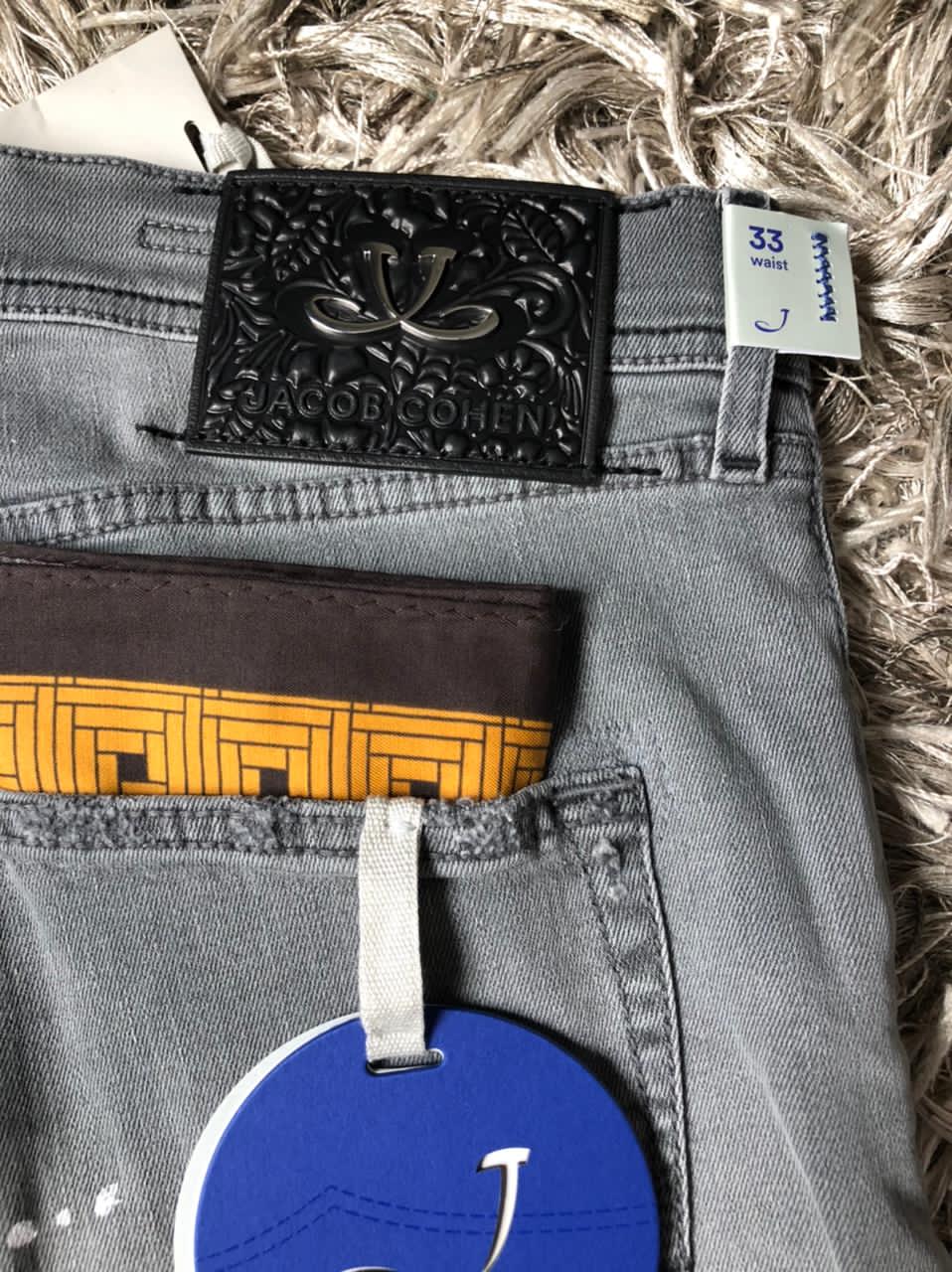 JACOB COHËN новые мужские джинсы с эффектом разбрызганной краски и потёртостями светло-серого цвета J656 (33 size)
