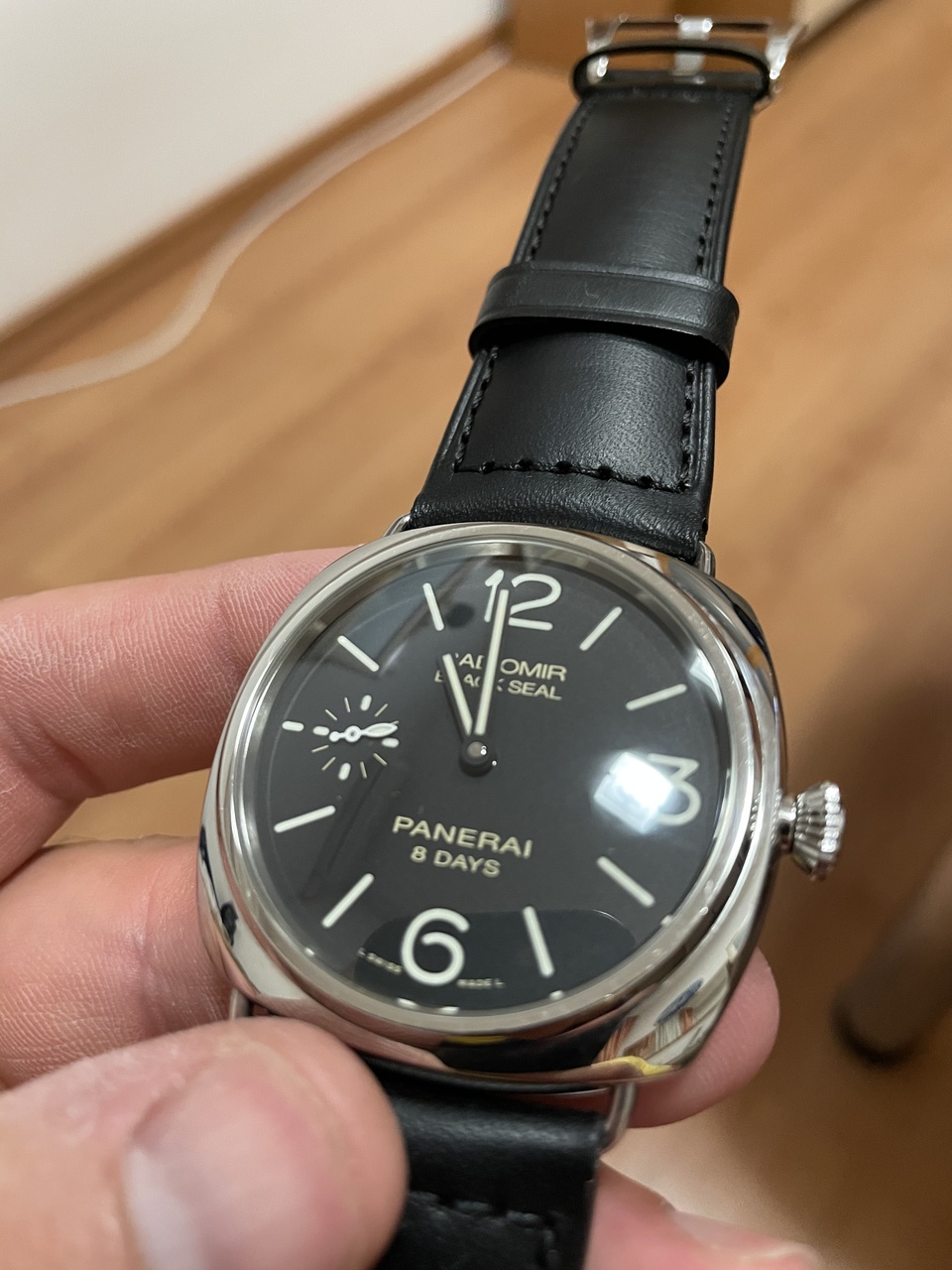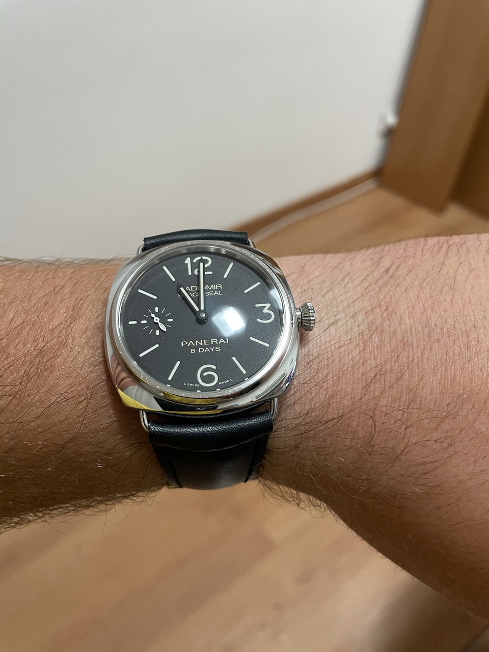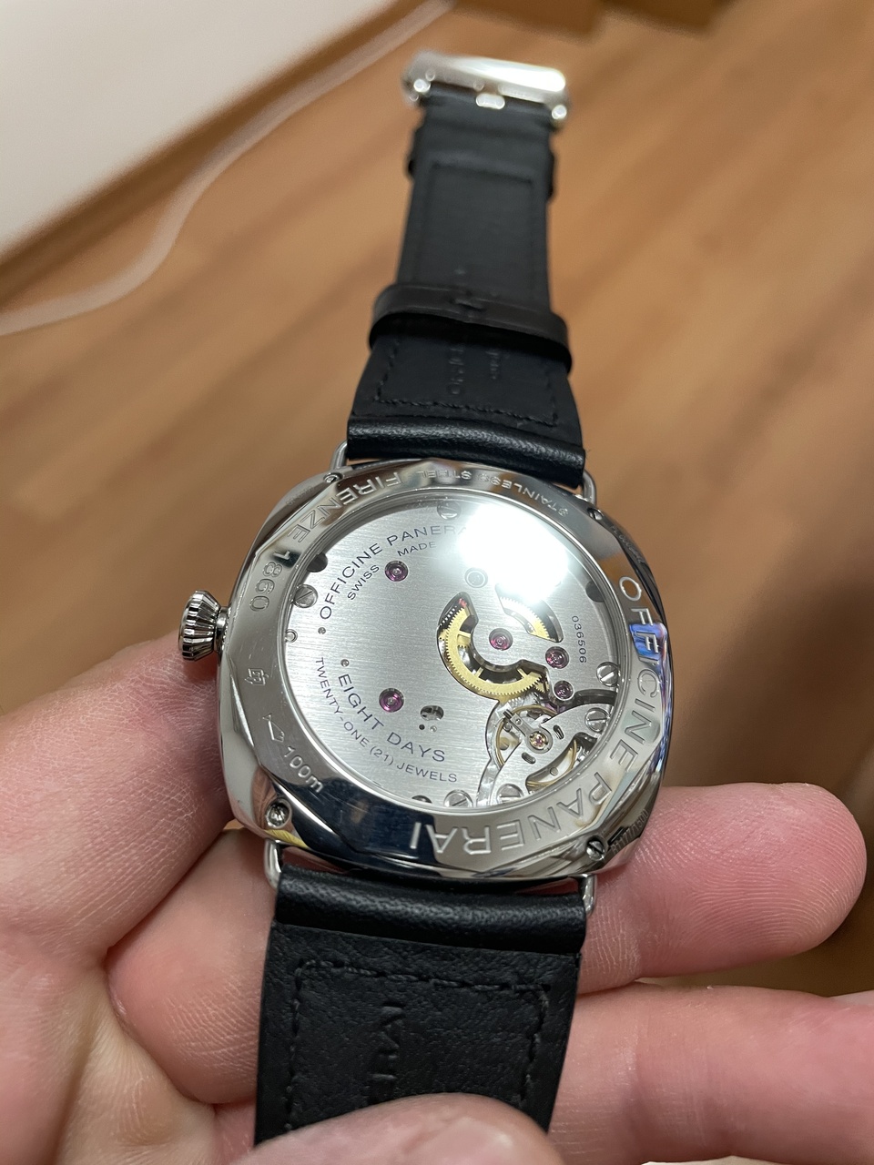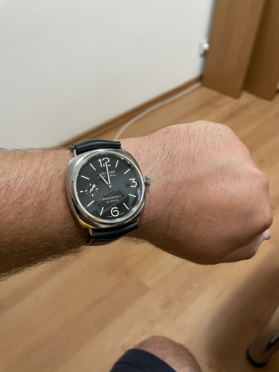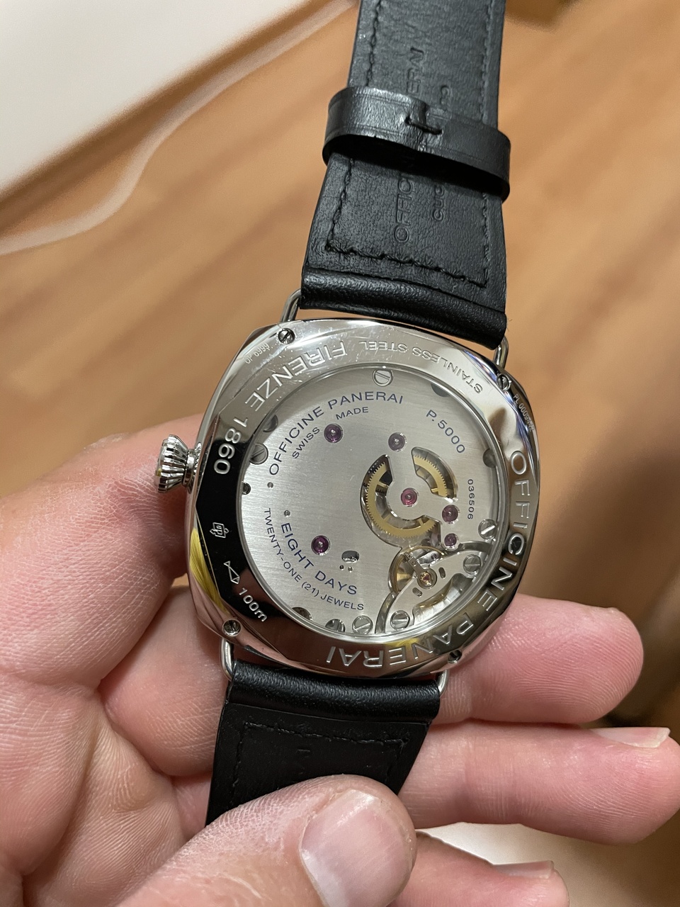 В этом ни эта, ни «на базе эта», а мануфактурный механический калибр Panerai с ручным заводом и запасом хода 8 ДНЕЙ!