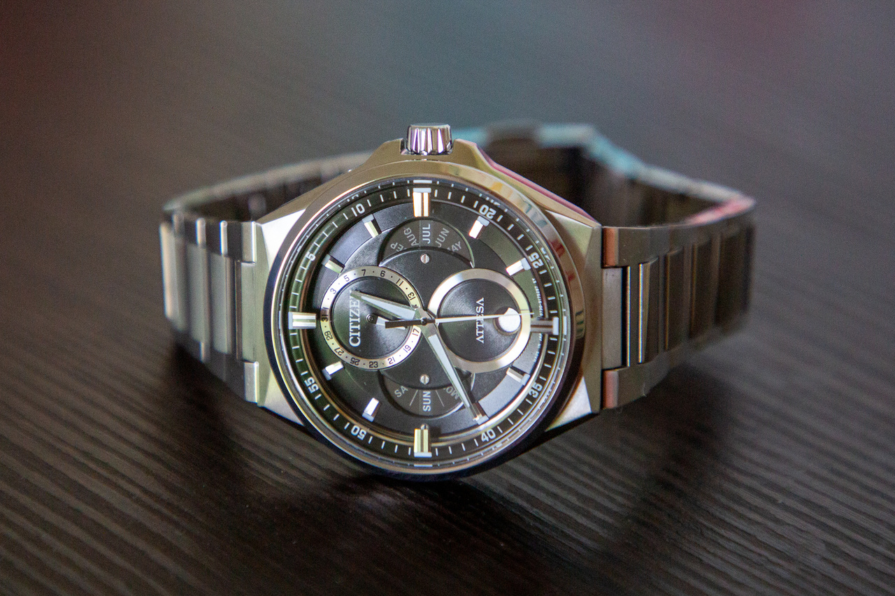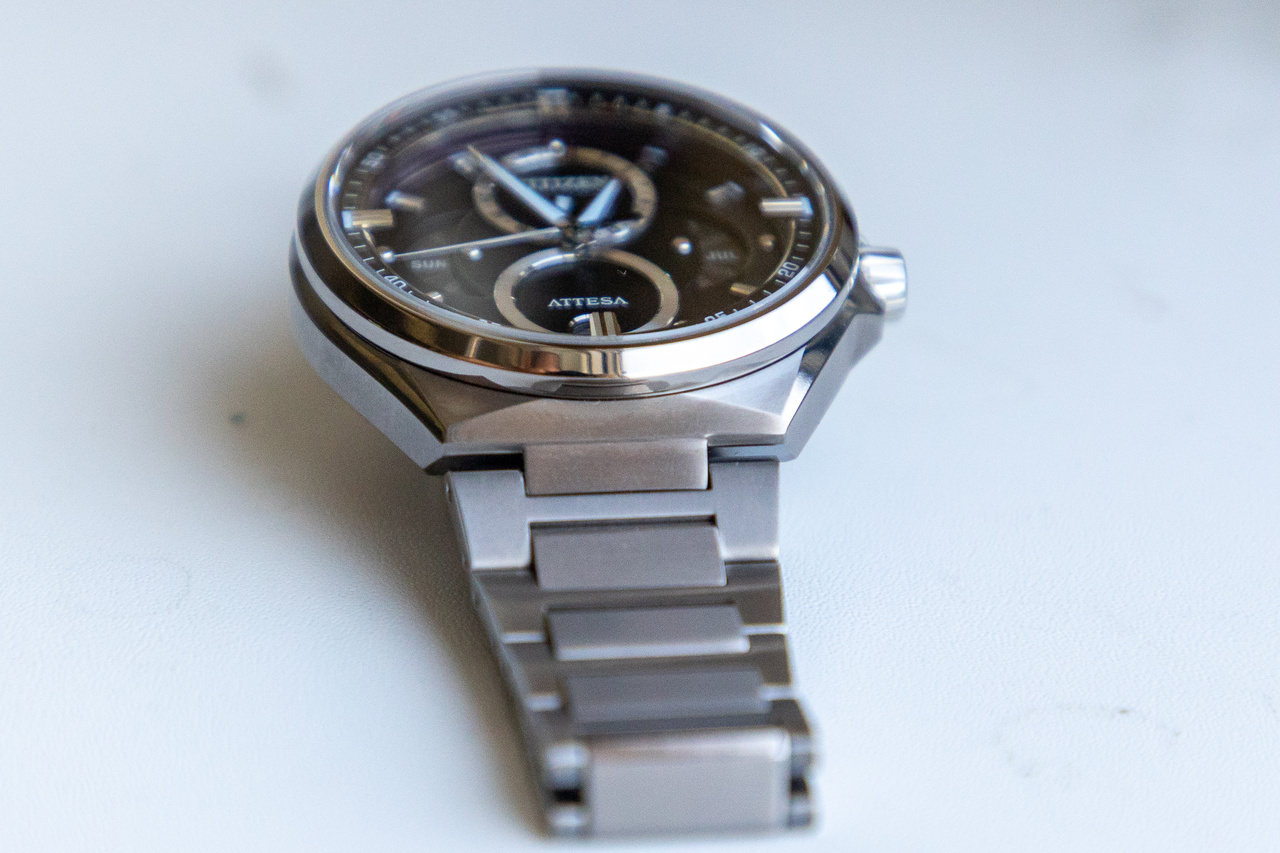 В соответствии с разнообразием деловых стилей в линейке «ACT Line» появилась модель, оснащенная тройным календарем и указателем фаз Луны, которую можно использовать как в костюмном стиле, так и в стиле кэжуал. Возрождая логотип бренда «ATTESA» на циферблате, мы стремились к привлекательности и ценности, которых нет в существующих моделях.Используя механизм «Ring Solar», который имеет солнечный элемент на внешней окружности знака в эко-приводе, мы реализовали многослойную структуру с глубиной и персональным циферблатом.