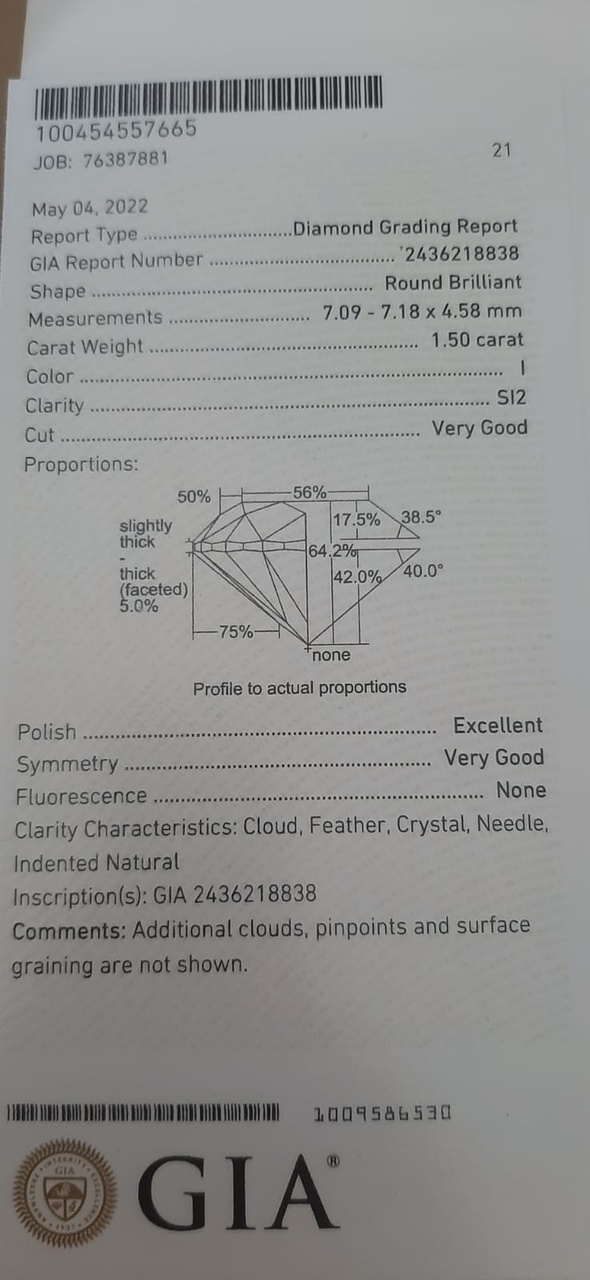 В продаже кольцо с бриллиантом 1,50 карат (сертификат GIA)!