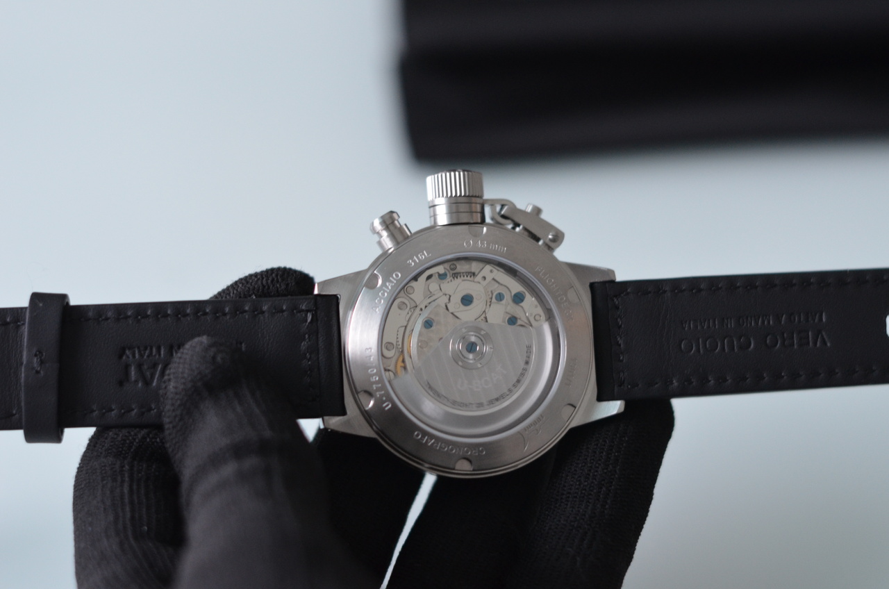 Внутри швейцарский калибр ETA7750, запас хода 44 часа.