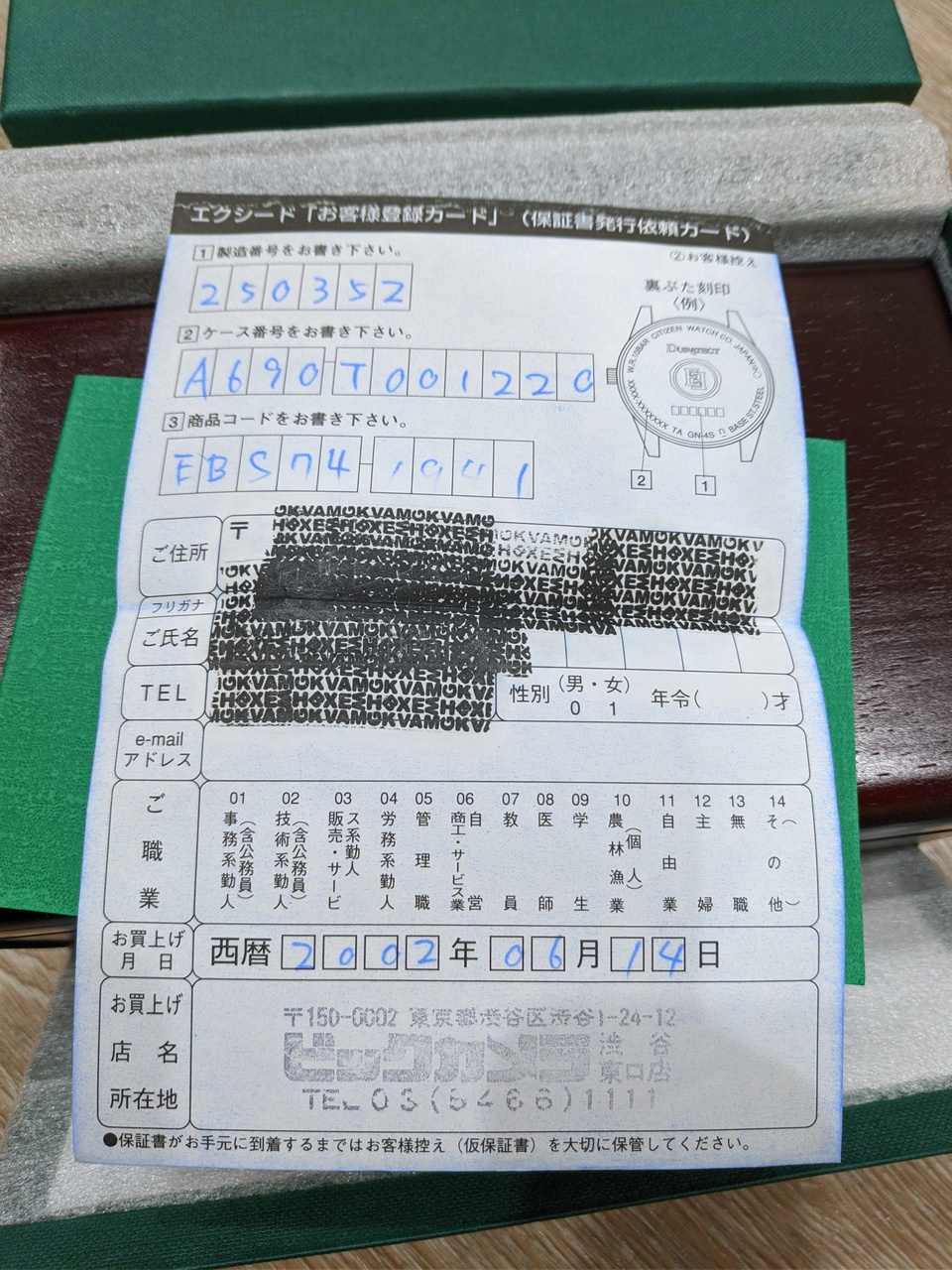 Полный заводской комплект: картонная коробка, коробка из красного дерева с бархатной обшивкой, инструкция, гарантийная карта, товарный чек о покупке (см. фото).