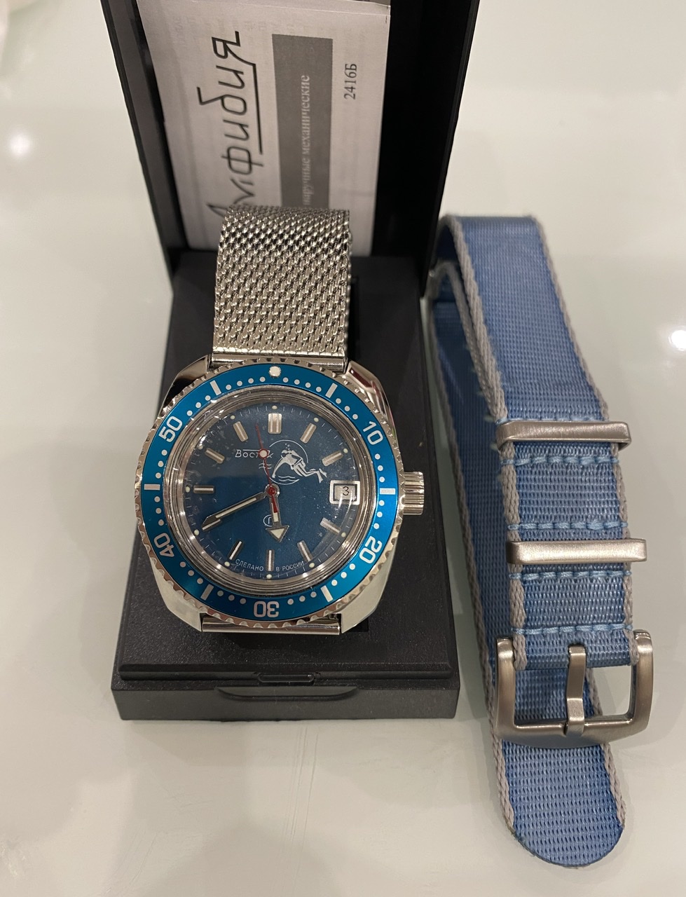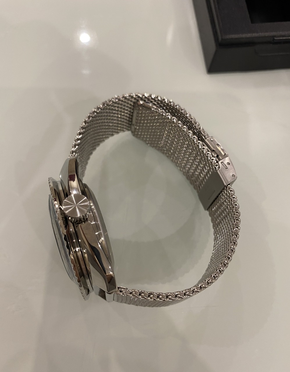 Установлен меш браслет. Ремень нейлон в комплекте.