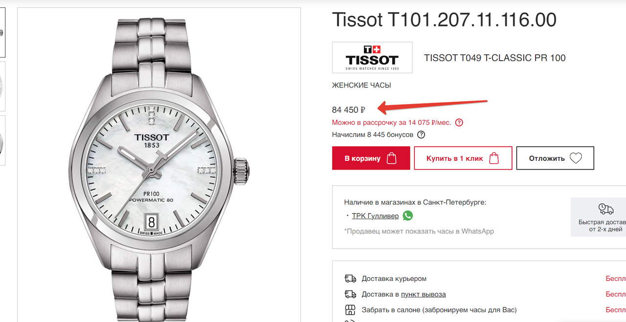 [Женские] TISSOT PR100 Auto T1012071111600. Механика / Браслет / Бриллианты / d=33mm - Часовой форум Watch.ru
