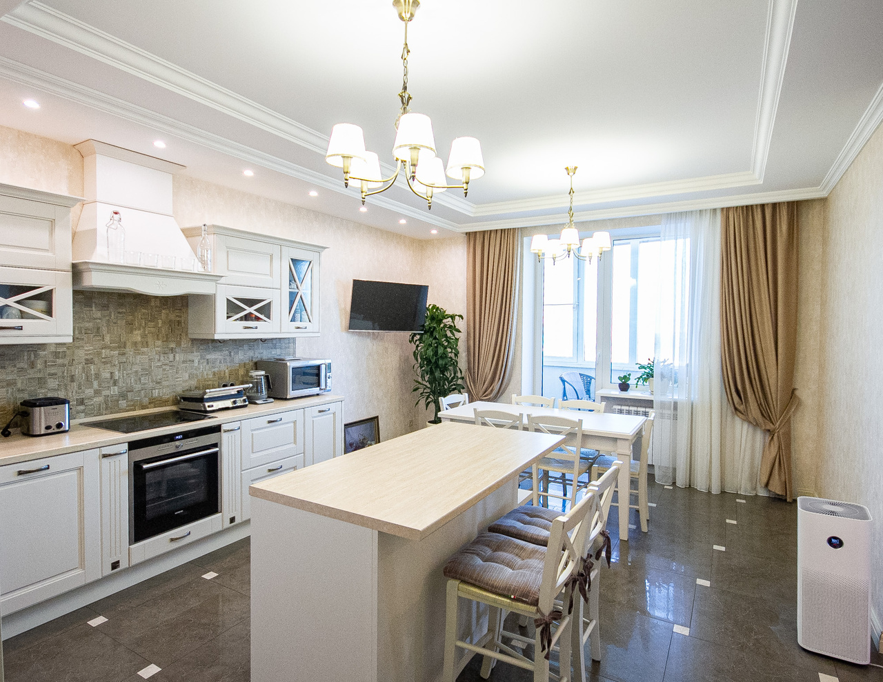 Ремонт выполнен из качественных дорогих материалов. Высокие потолки квартира очень светлая и уютная. Прекрасное предложение по цене и качеству!