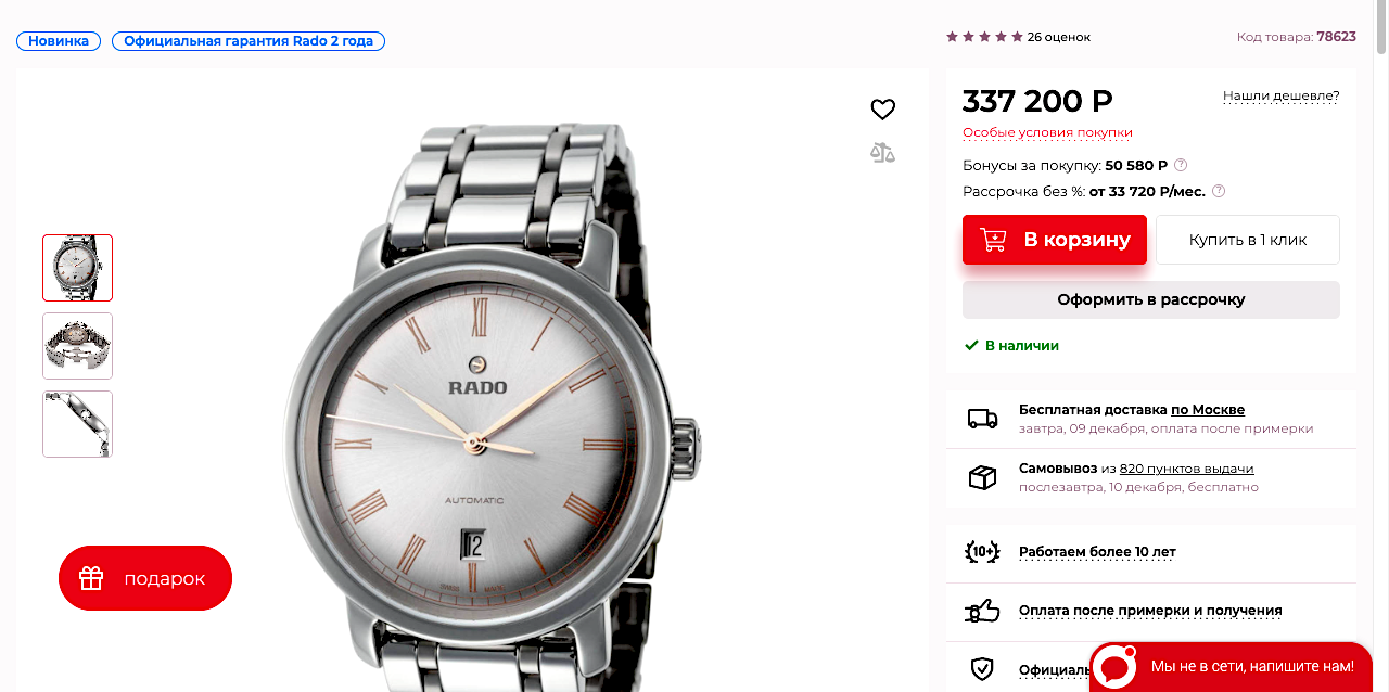 В Екатеринбурге, Москве, Санкт-Петербурге, Новороссийске - возможно лично забрать часы