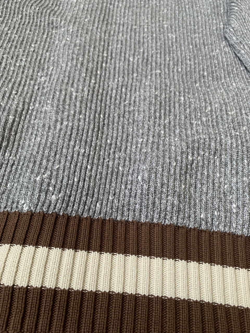 BRUNELLO CUCINELLI новый мужской кардиган Golf Stripes из хлопка и льна с неоднородным меланжевым эффектом светло-серого цвета (52 IT size)