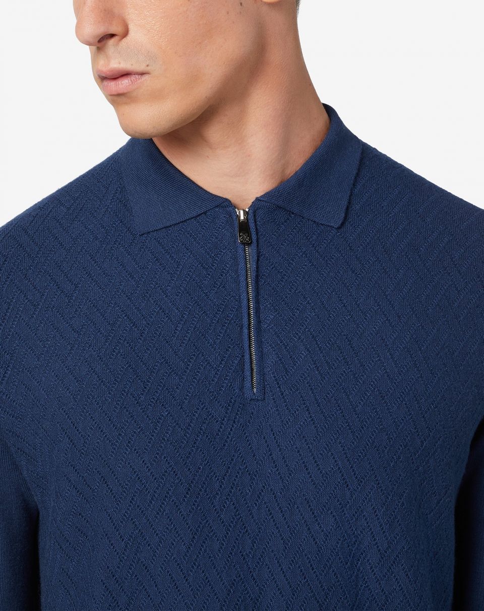 рубашка-поло с длинными рукавами и молнией из очень тонкой мериносовой шерсти тройного кручения