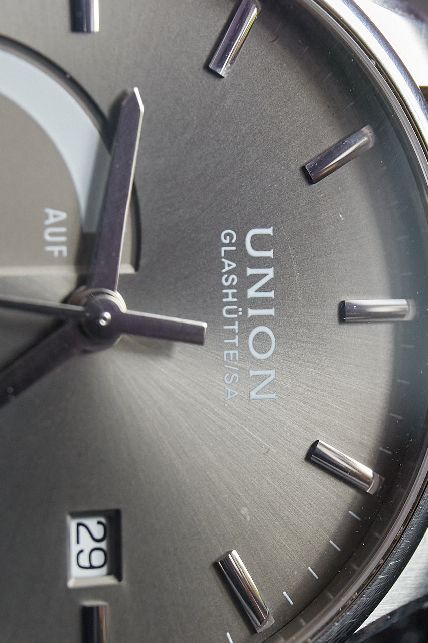 Вкратце: появилась пыль внутри, появились царапины на стрелке запаса хода, как будто ее зубами медведя снимали, появились дефекты на циферблате в вокруг стрелки запаса хода, как будто на нем гномы в каблуках танцевали. Потом при макросъемке, я рассмотрел еще больше дефектов.