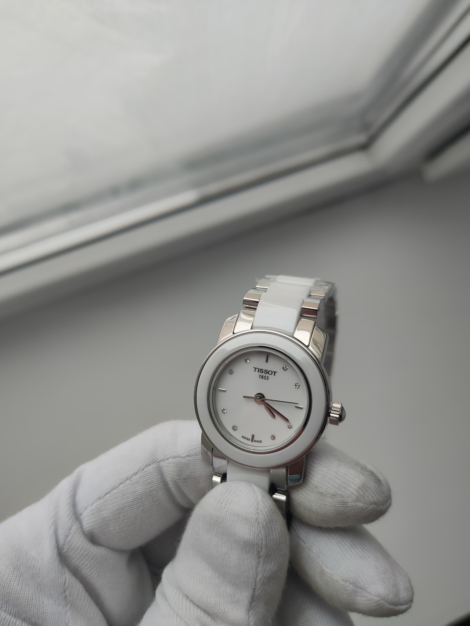 В продаже интересная кварцевая модель от именитого производителя с очень добротной отделкой. Бриллианты на метках (8 штук), белый керамический безель, отличный литой браслет с застежкой-бабочкой и белыми керамическими вставками, кабошон в заводной головке. В живую часы выглядят гораздо богаче и интереснее чем на фото.