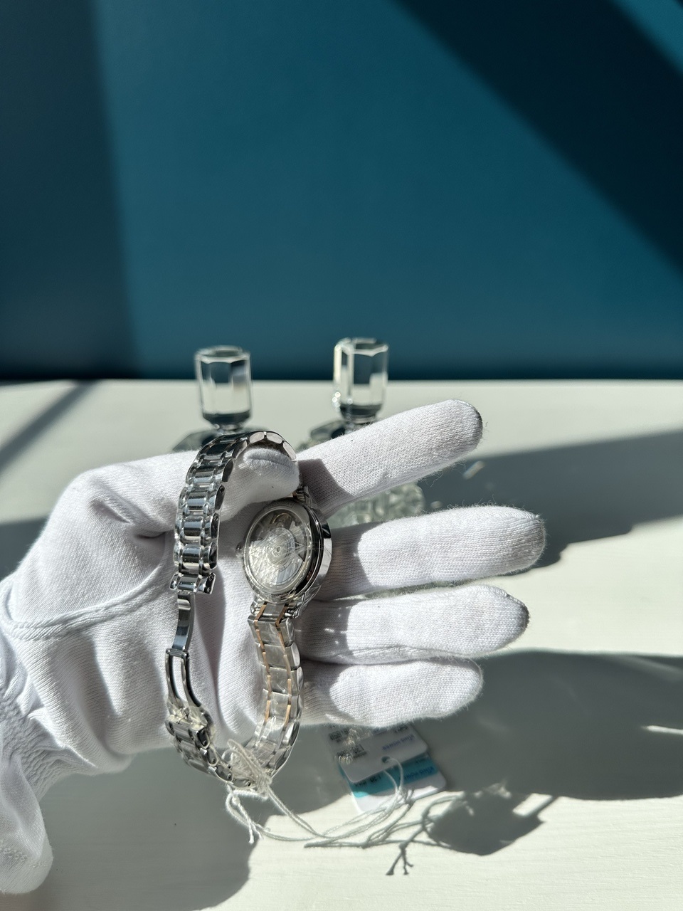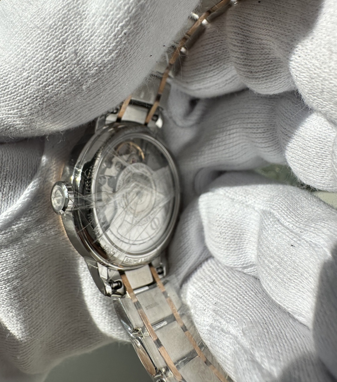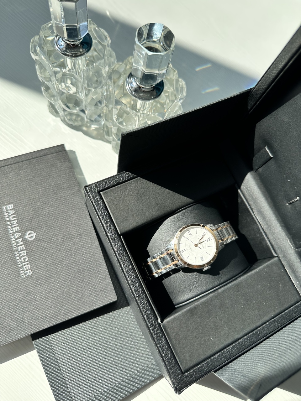 Новые, в заводской пленке, на гарантии. Производство - Швейцария. Женские часы Baume&Mercier Classima Automatic White M0A10269. Диаметр корпуса 31,5 мм. белый циферблат разделен на секции и украшен гильошированным узором в центре. Корпус выполнен из розового золота 18К и нержавеющей стали. Часы имеют полированный безель из розового золота. Циферблат дополняют индексы и стрелки из розового золота. Браслет из нержавеющей стали с элементами из розового золота завершает дизайн часов. Функции модели включают апертуру даты. Тип движения - автоматический. Водостойкость WR 50. Устойчивое к возникновению царапин сапфировое стекло с антибликовым покрытием.