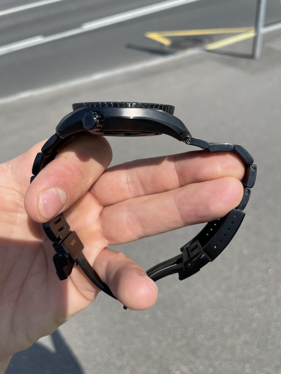 Изначально стоял силиконовый ремешок, год назад поменял на металлический браслет miltat от strapcode(дополнительные звенья есть) на винтах.