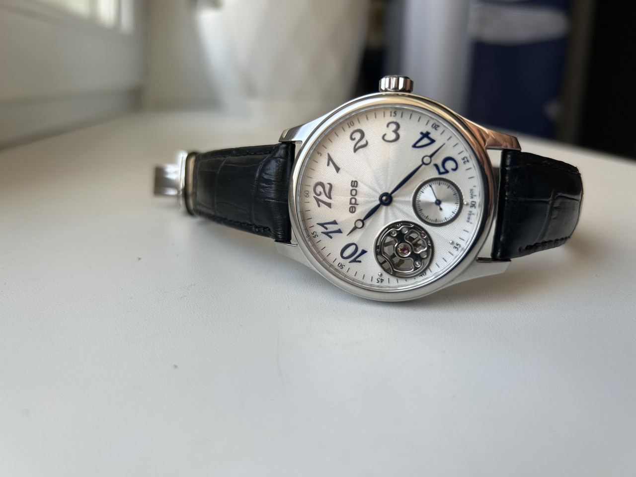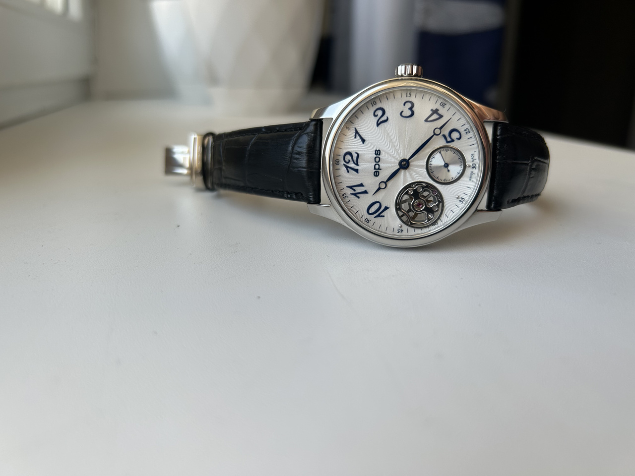 В продаже редкие часы для души от именитого производителя. Отличный вариант любителям ретро и ручного завода, либо тем, кто пока финансово не готов к Stowa, Nomos, Glashutte, Longines, Tourby и к прочим моделям из линеек Heritage, marine и military от именитых производителей... Я не первый хозяин в РФ. Покупал в таком же состоянии по случаю. Иногда использовал как часы "для души" / часы выходного дня. Под капотом - самый надежный и уважаемый ценителями механизм с ручным заводом- Unitas 6498. Цифер очень красивый- серебристого цвета с гильоше и синими цифрами (фото не передает до конца, к сожалению). Декор механизмов у моделей Epos выше всяких похвал - любоваться одно удовольствие. Тикают громко и душевно