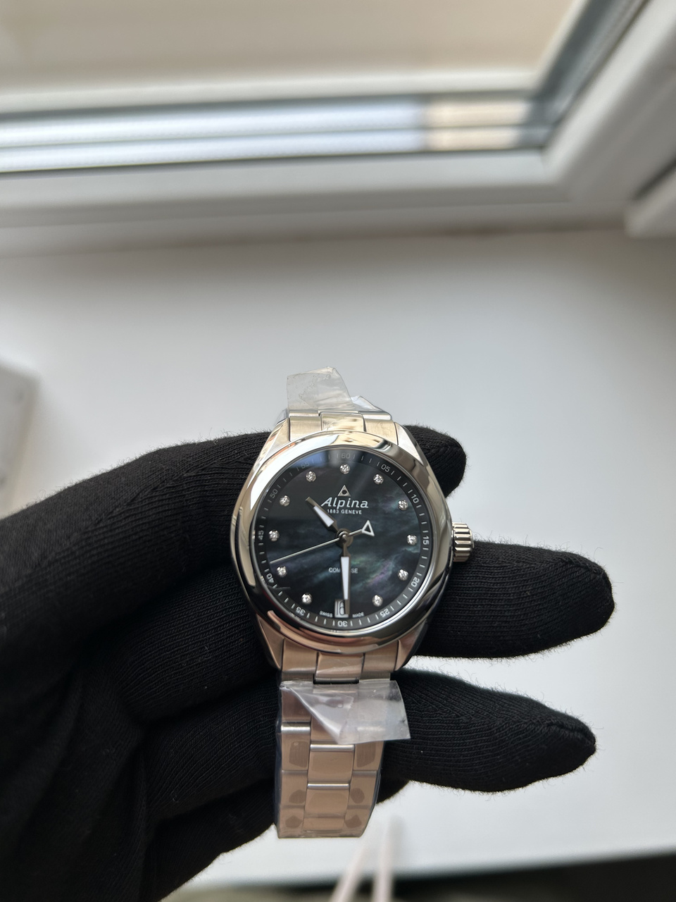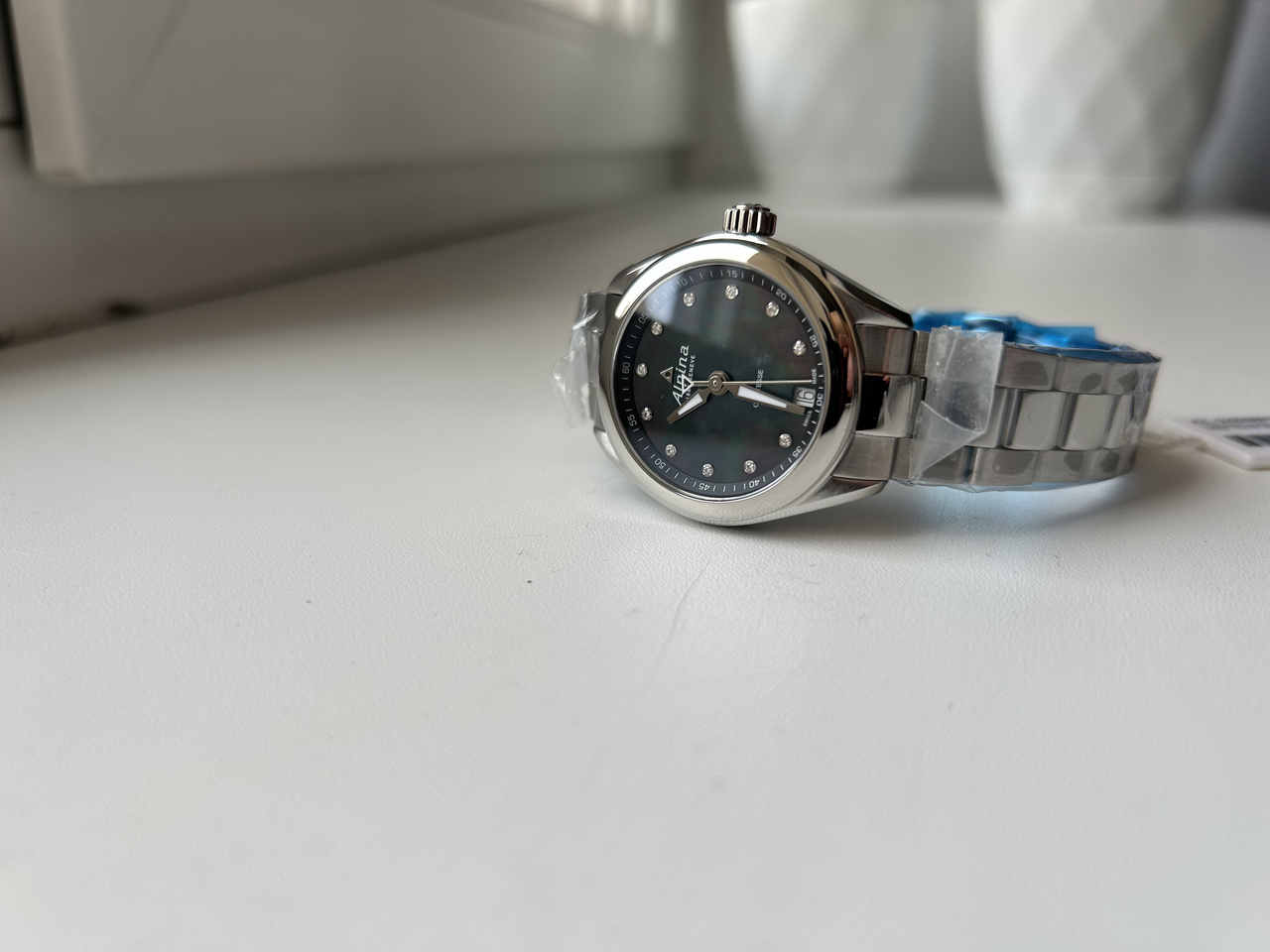 Предлагаю к продаже шикарный женский повседневник, подходящий на все случаи жизни - модель Alpina Comtesse с темным перламутровым цифером и метками-бриллиантами. Часы исполнены максимально качественно - отличный литой браслет с застежкой-бабочкой, шикарный перламутровый цифер с накладными элементами и отличным люмом на стрелках, безупречное качество полировки и сатинирования поверхностей. За эти деньги просто бомба.
