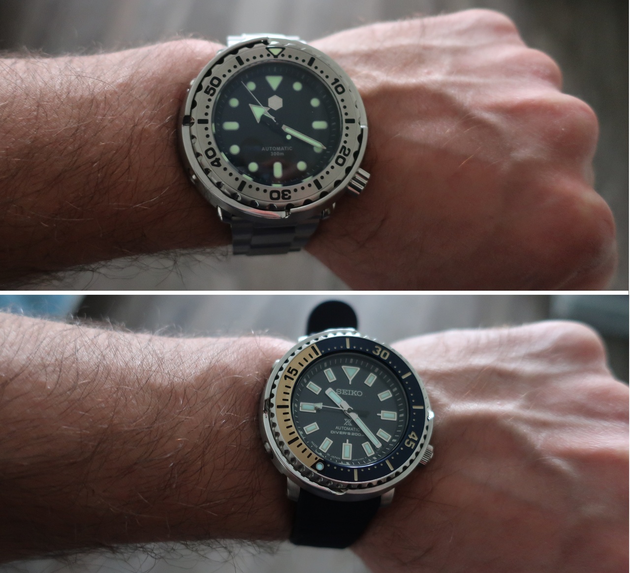 2. Фаны Seiko не считают Baby Tuna тунцом. Правильнее называть их не “тунцом”, а “часами в тунцовом корпусе/стиле”. Но это длинно, и я буду писать просто “тунец”.