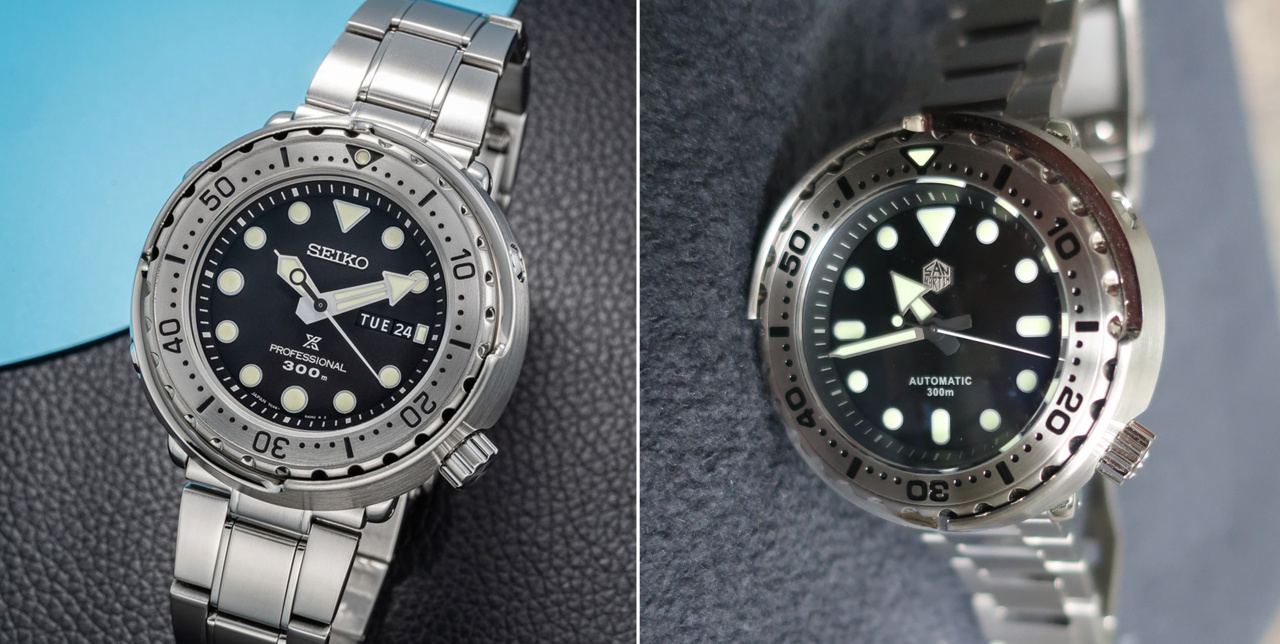 $1100. Но в синем углу ринга не они, а другая модель — одни из самых доступных часов в тунцовом корпусе,