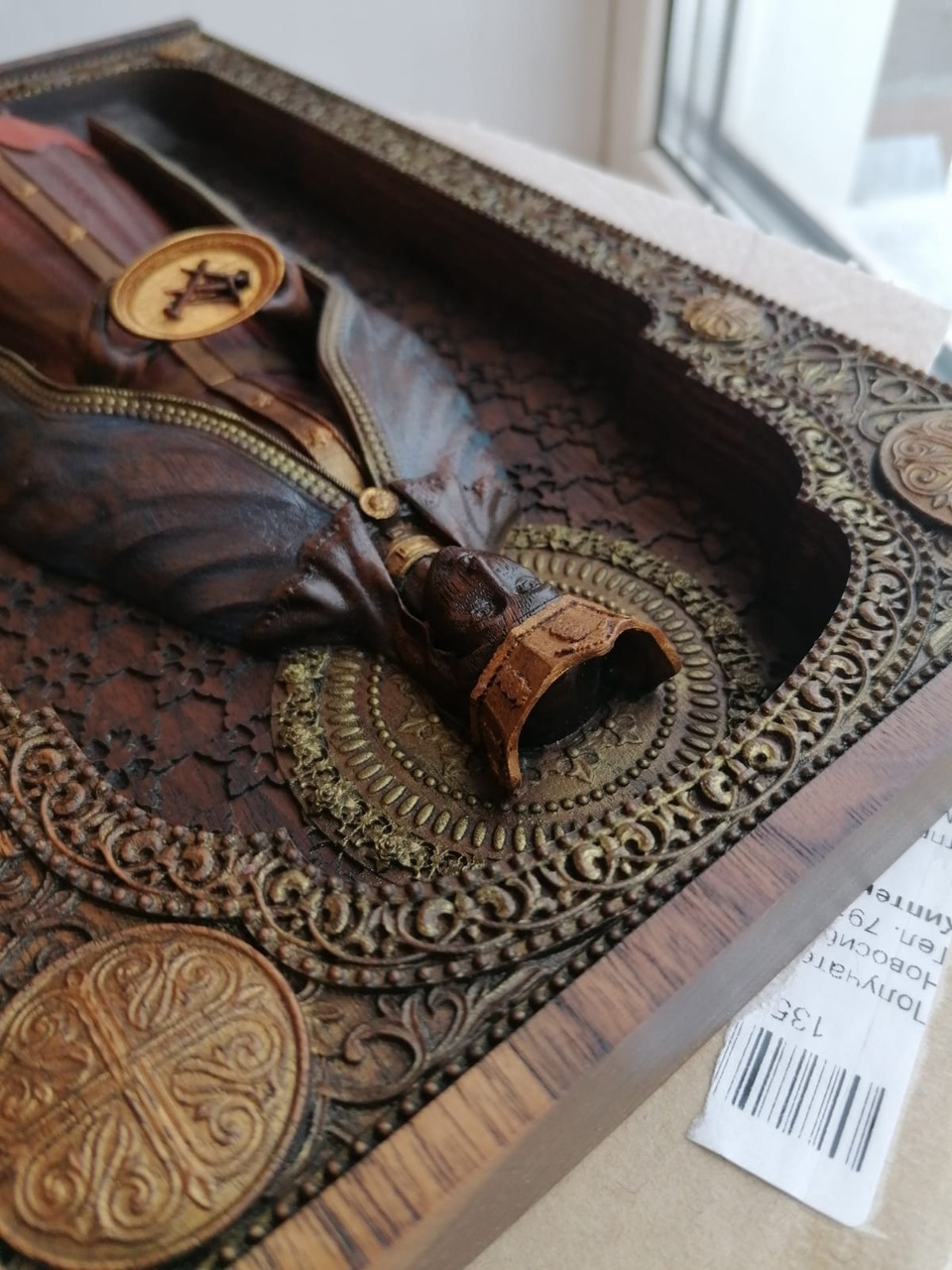 Вещь совершенно уникальная, трехмерная модель создана известным модельером, работающем только в православной тематике на заказ, в свободном доступе ее нет, а икона изготовлена в единственном экземпляре, повторяться не будет. Полка так же разработана специально под эту икону. Такие вещи приобретаются как правило для себя или для самых дорогих людей. Очень желательна личная продажа без пересыла, но это тоже возможно.