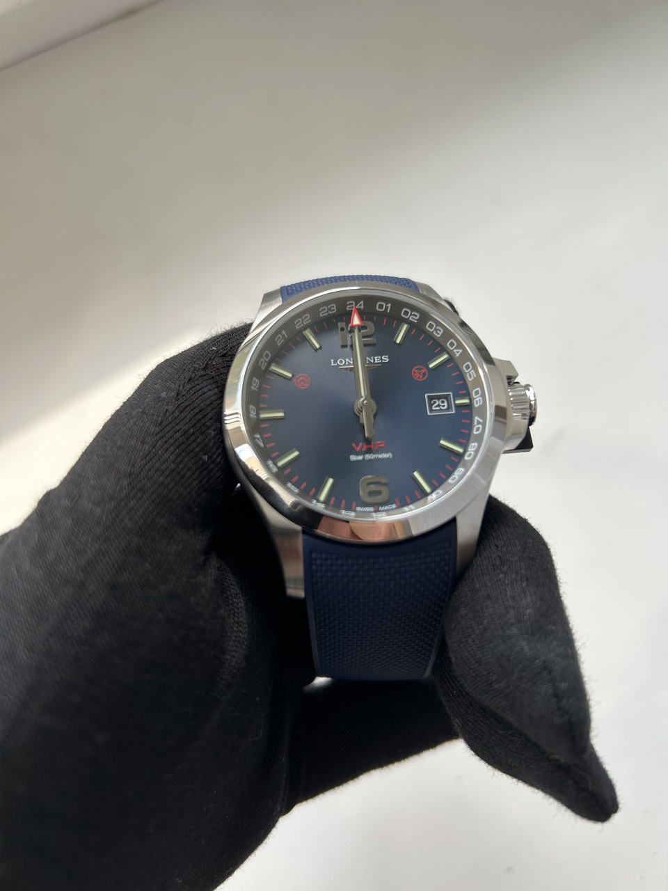 В продаже лучший швейцарский, а может и вообще лучший высокоточный кварц в мире. Шикарная версия с GMT (второй часовой пояс) из линейки VHP в универсальном 43 кузове и самой красивой, на мой скромный взгляд, расцветке - синей на синем каучуке.