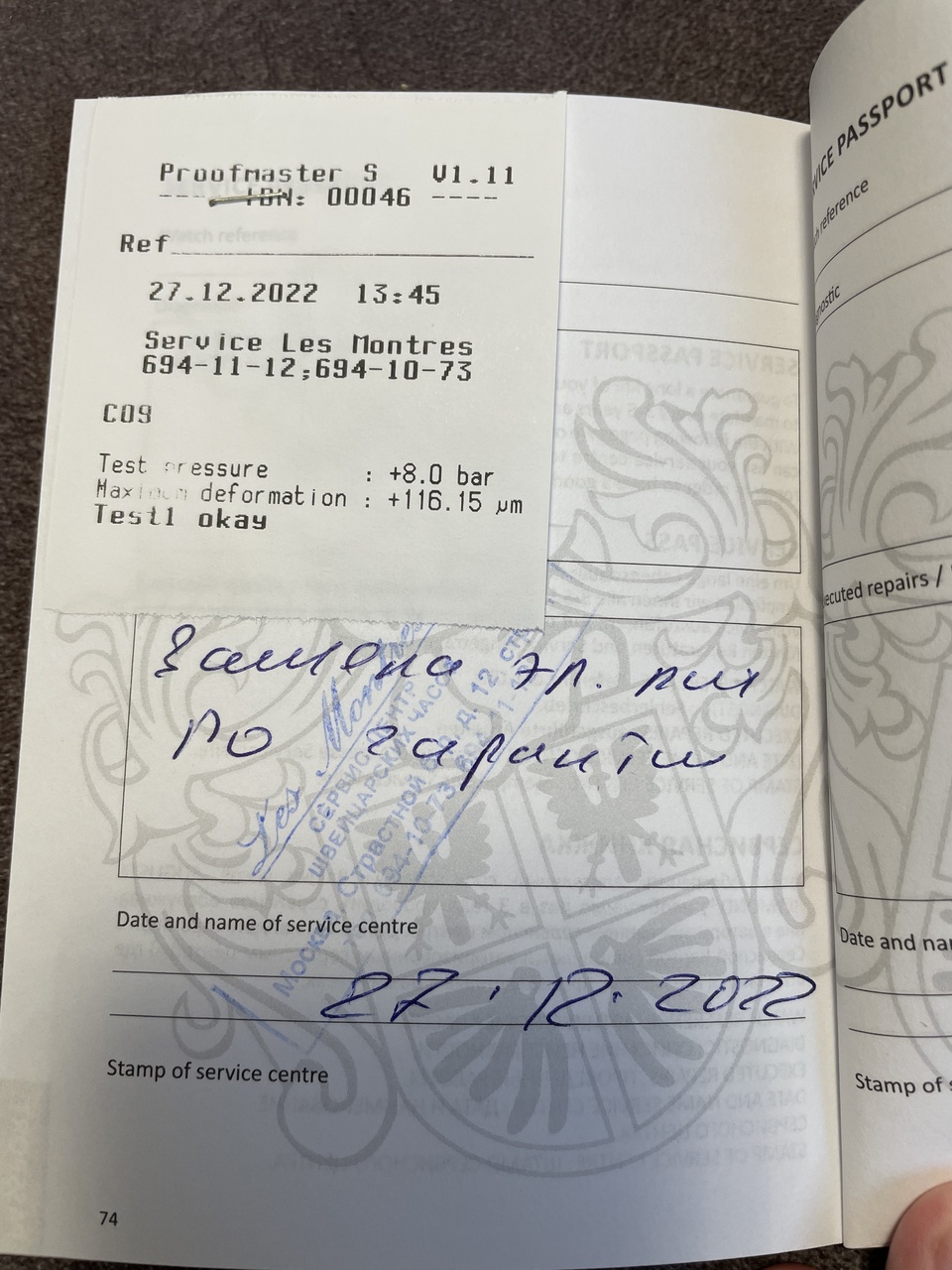 были куплены в в апреле 2021 года в Les Montre, в декабре 2022 в официальном сервисе была произведена замена батареи, что продлило гарантию на часы от производителя до 10 лет.