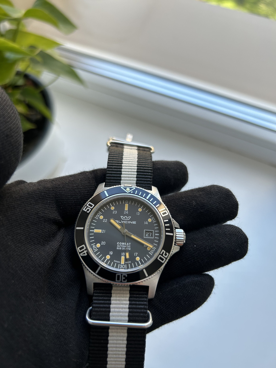 В продаже отличный механический дайвер от уважаемого швейцарского производителя. Черный цифер с оранжевыми метками и стрелками создают идеальную читаемость под любым углом. Отличный люм. Поворотный дайверский безель. Суммарно имеем отличный механический повседневник с не избитым дизайном.