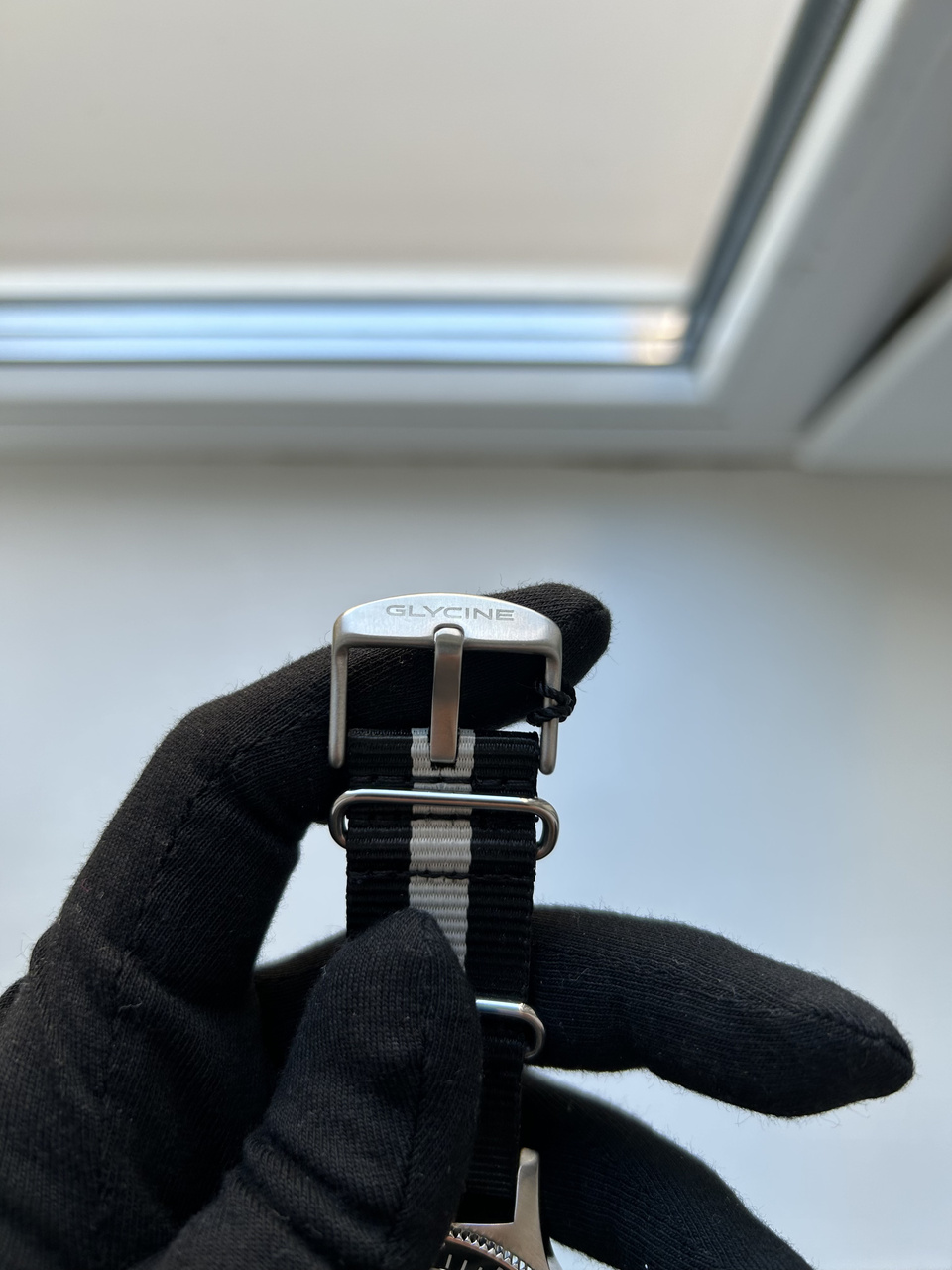 Отличный плотный ремешок НАТО с фирменной баклей с гравировкой на 22 мм