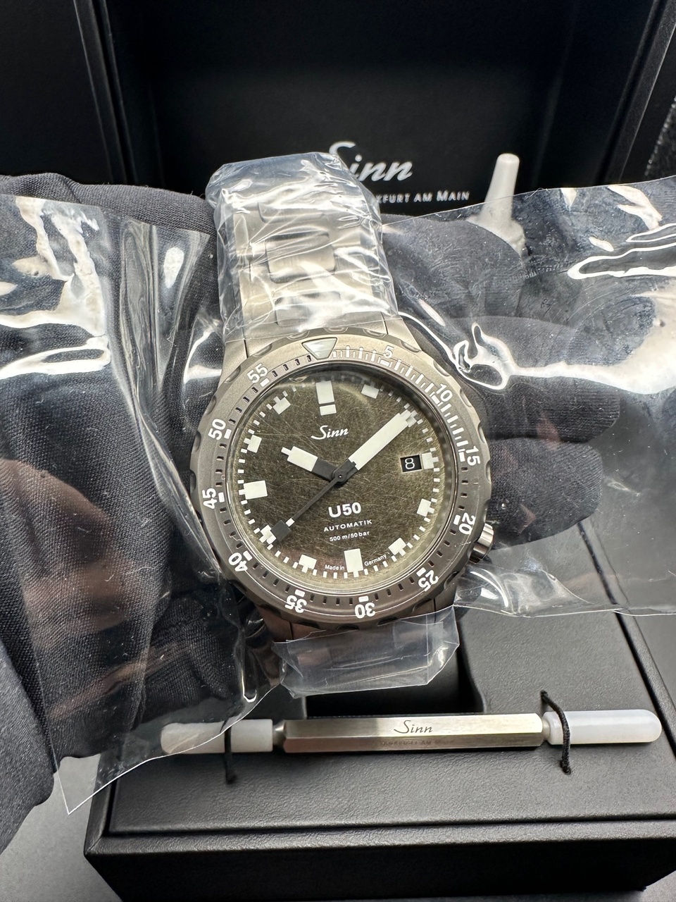 SINN U50-я серия - относительно новая из модельного ряда Sinn, дополнила собой популярный дайвер U1 но в более гармоничном и легком исполнении. Все достоинства более крупной модели сохранены, те же технологии, возможность носить и на браслете, и на силиконе, и на коже, используя оригинальные аксессуары. Единственное отличие - водозащита была уменьшена до 500 м, так как более скромный размер не позволяет добиться выдающихся 1000 м как у U1.